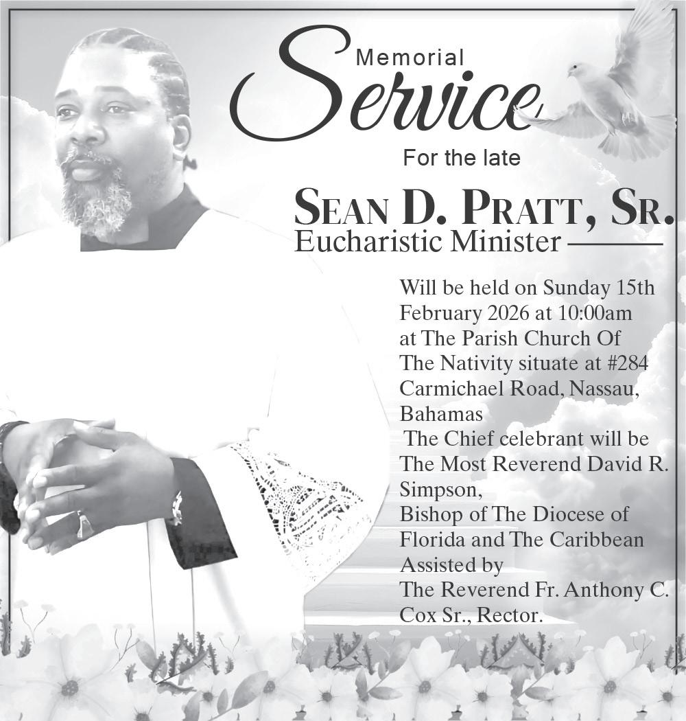 A funeral service will be held at Evangelistic Temple, Collins Avenue, Nassau, on Saturday, 21st February, 2026 at 4:00 p.m.