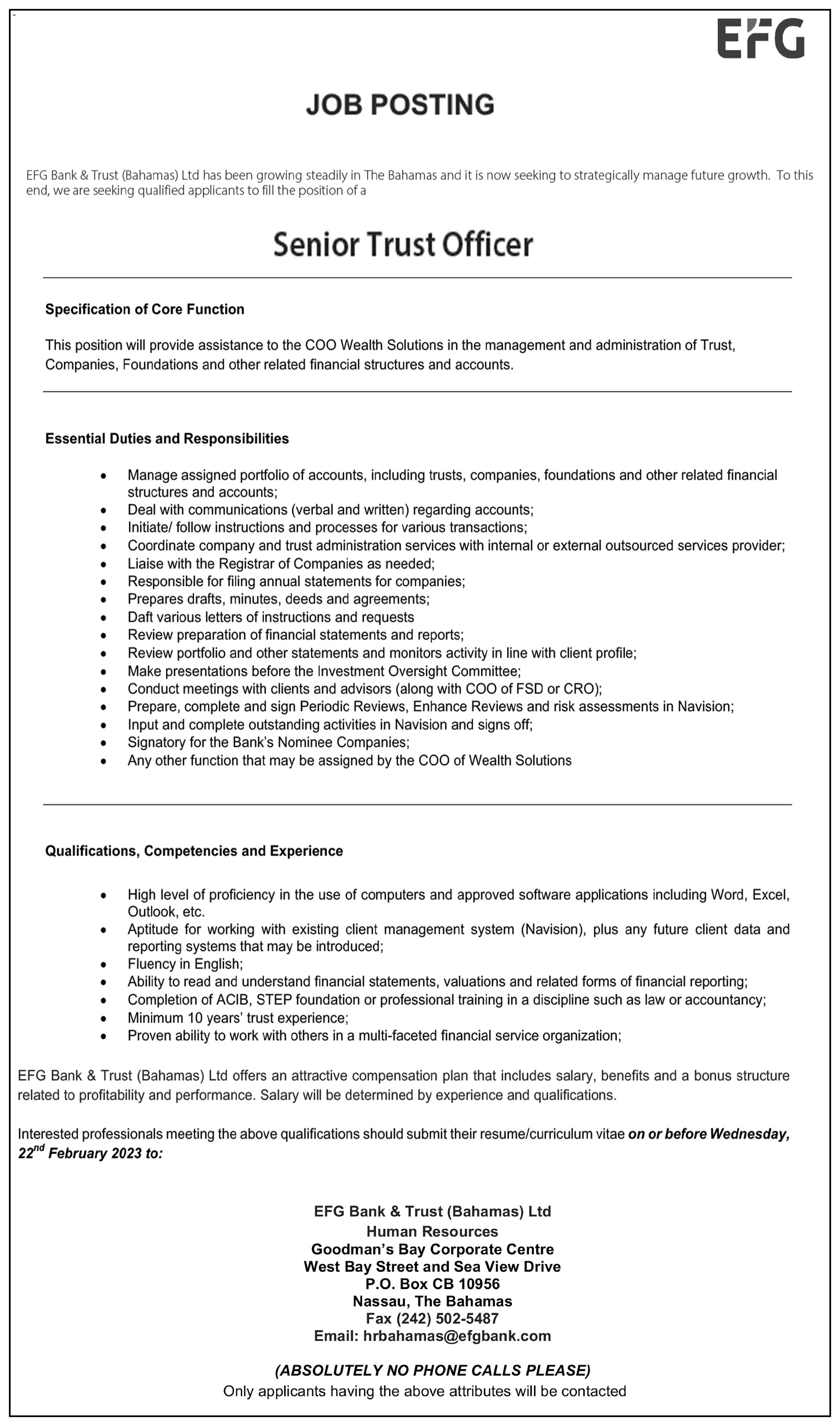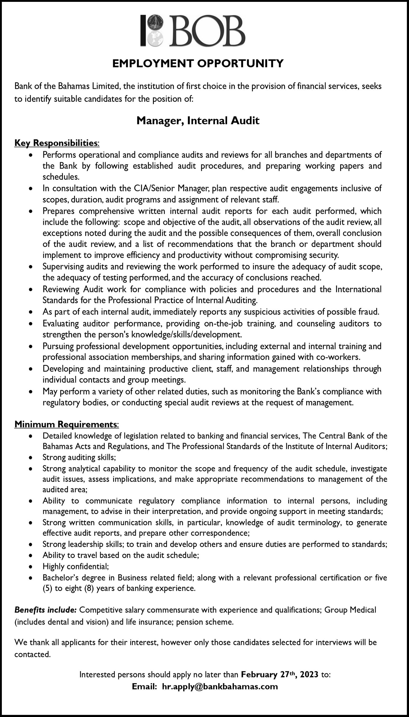Persons not meeting the above requirements need not apply Please note that only individuals short-listed for an interview will be contacted Deadline for applications Wednesday, February 22nd, 2023