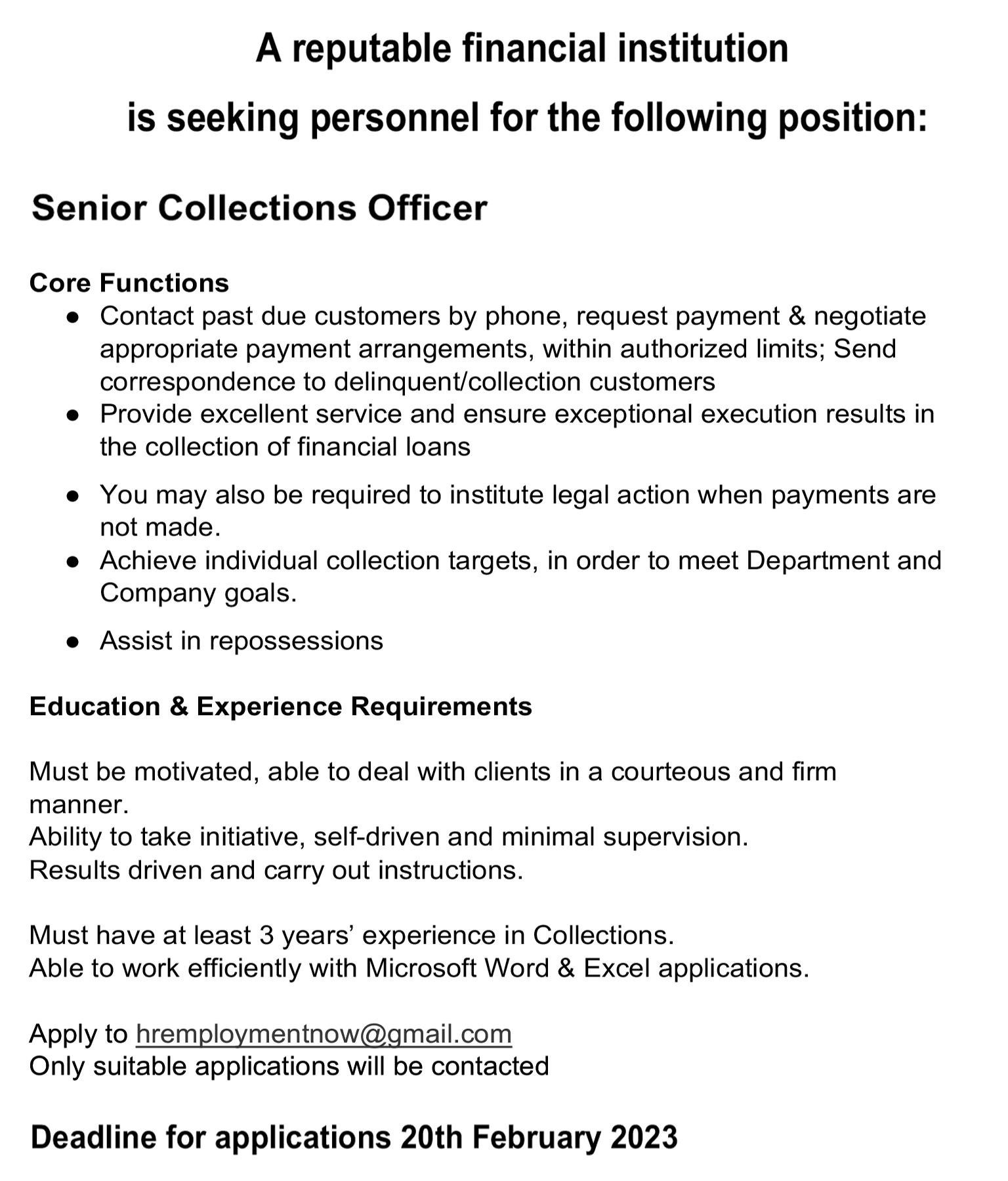 • Associates’ Degree in Business Administration, Economics, Banking & Finance or Accounting or equivalent