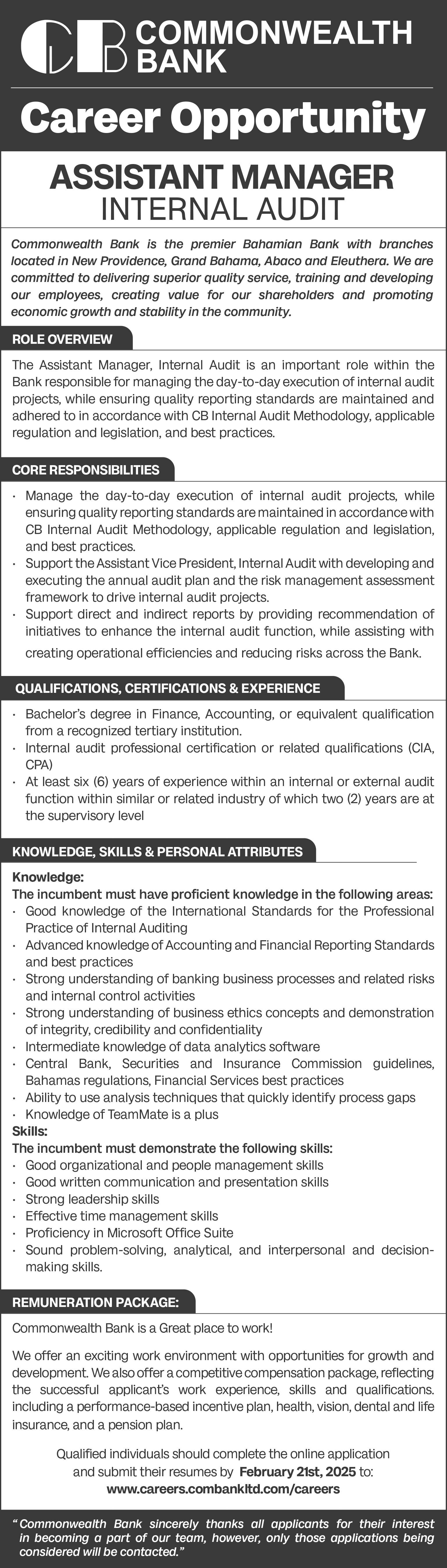 resources system that prioritises training. While the goal is to eliminate the practice, she said that a small number of retired public servants have been rehired to maintain continuity and ensure proper succession planning within government ministries. Nonetheless, Free National Movement leader Michael Pintard said the administration’s actions mean “hundreds of longsuffering civil servants and young, qualified Bahamians” have been “pushed even further down the line, watching job opportunities go to the same people who already had their turn.”