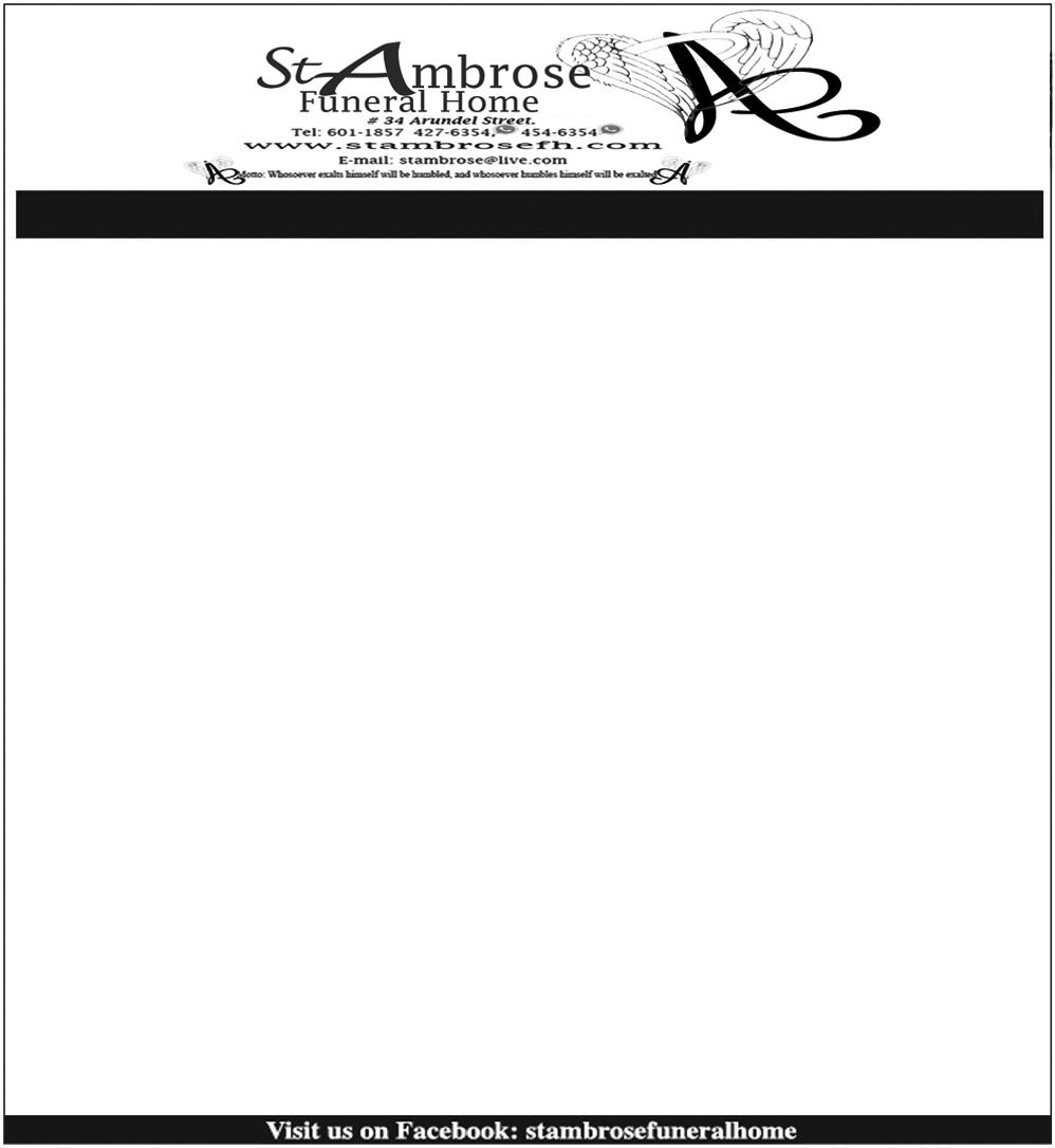 Relatives and friends may pay their respects at Yager Funeral Home & Crematorium, Queens Highway on (TODAY) Thursday from 12:00 noon until 5:00 p.m. and at the church on Friday from 12:00 noon until service time.