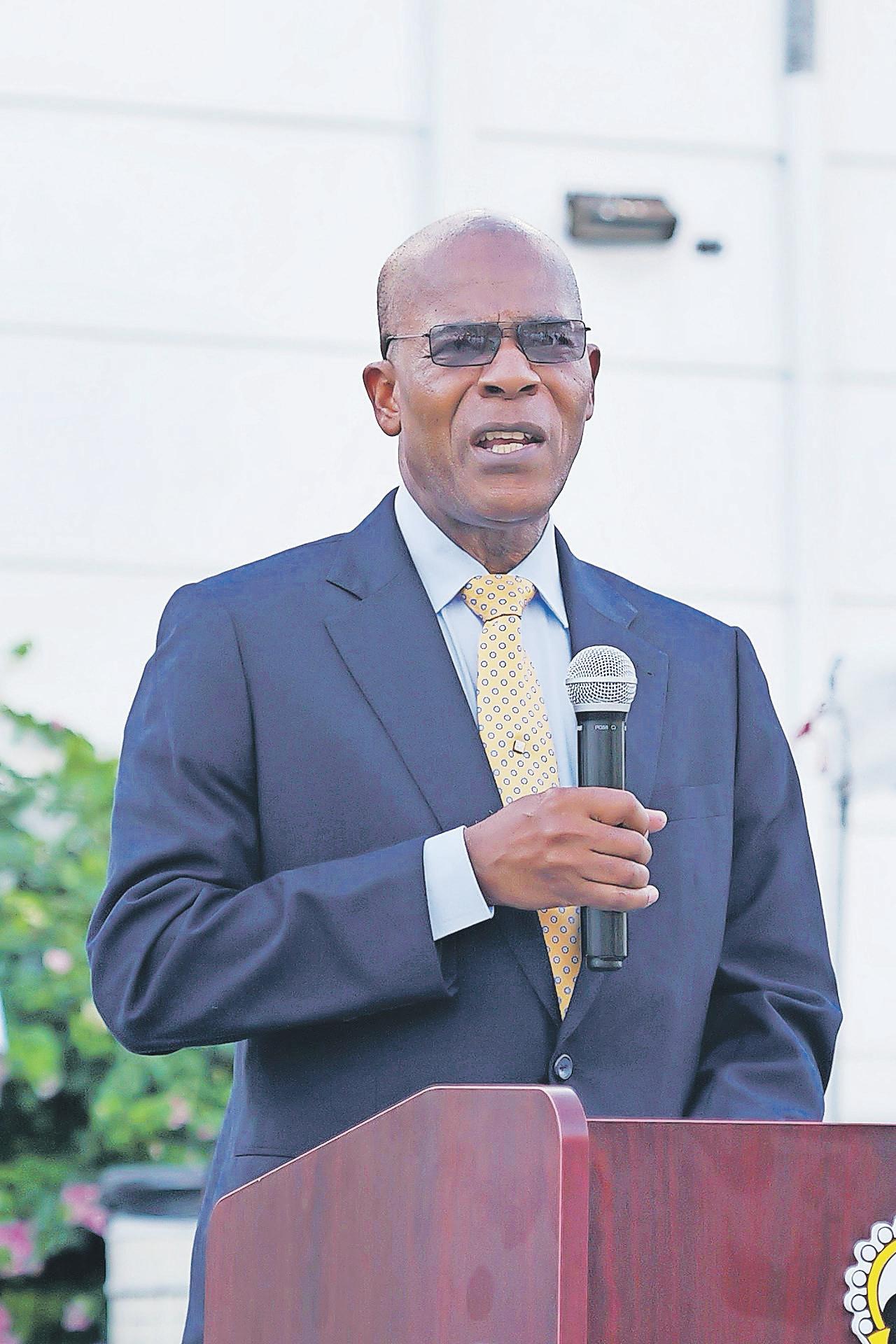 Comptroller of Customs Mr. Ralf Munroe giving brief remarks at Drill and Deportment Module Completion.