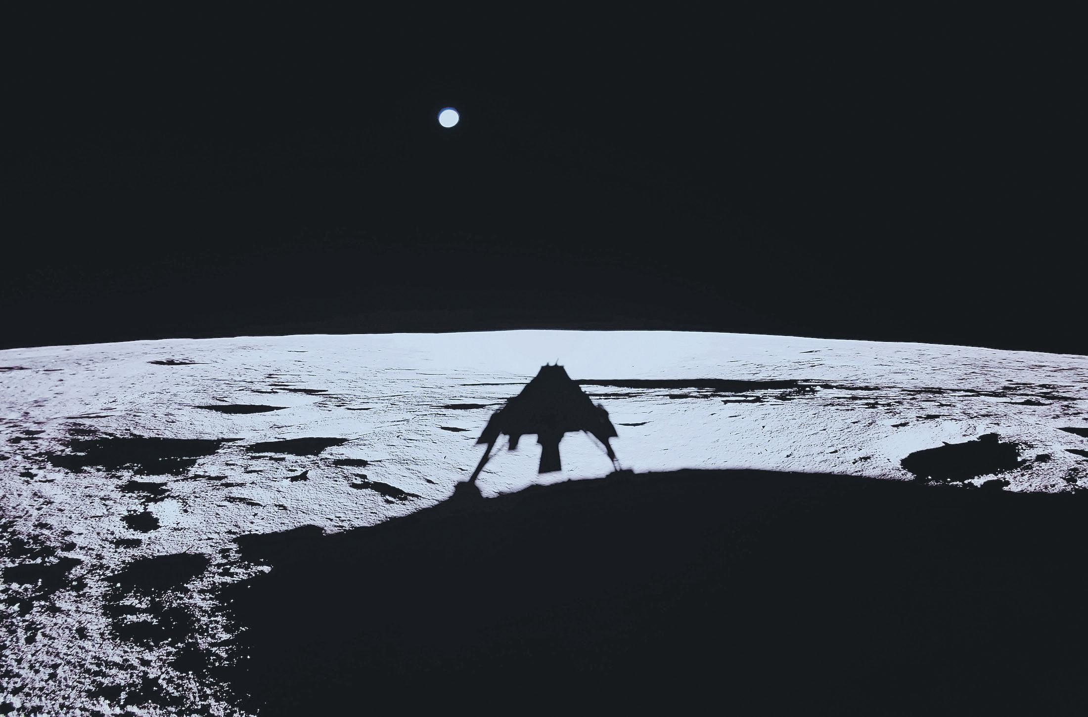 PRIVATE lunar lander Blue Ghost’s shadow is seen on the moon’s surface after touching down on the moon with a special delivery for NASA, Sunday, March 2, 2025.
