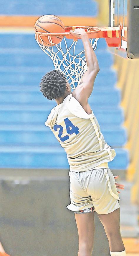 UB guard Kevaro Russell dunks the ball against The Bahamas Department of Correctional Services Challengers last week Thursday at The Kendal Isaacs Gym. The Mingoes won 91-60. Photo: UB Athletics