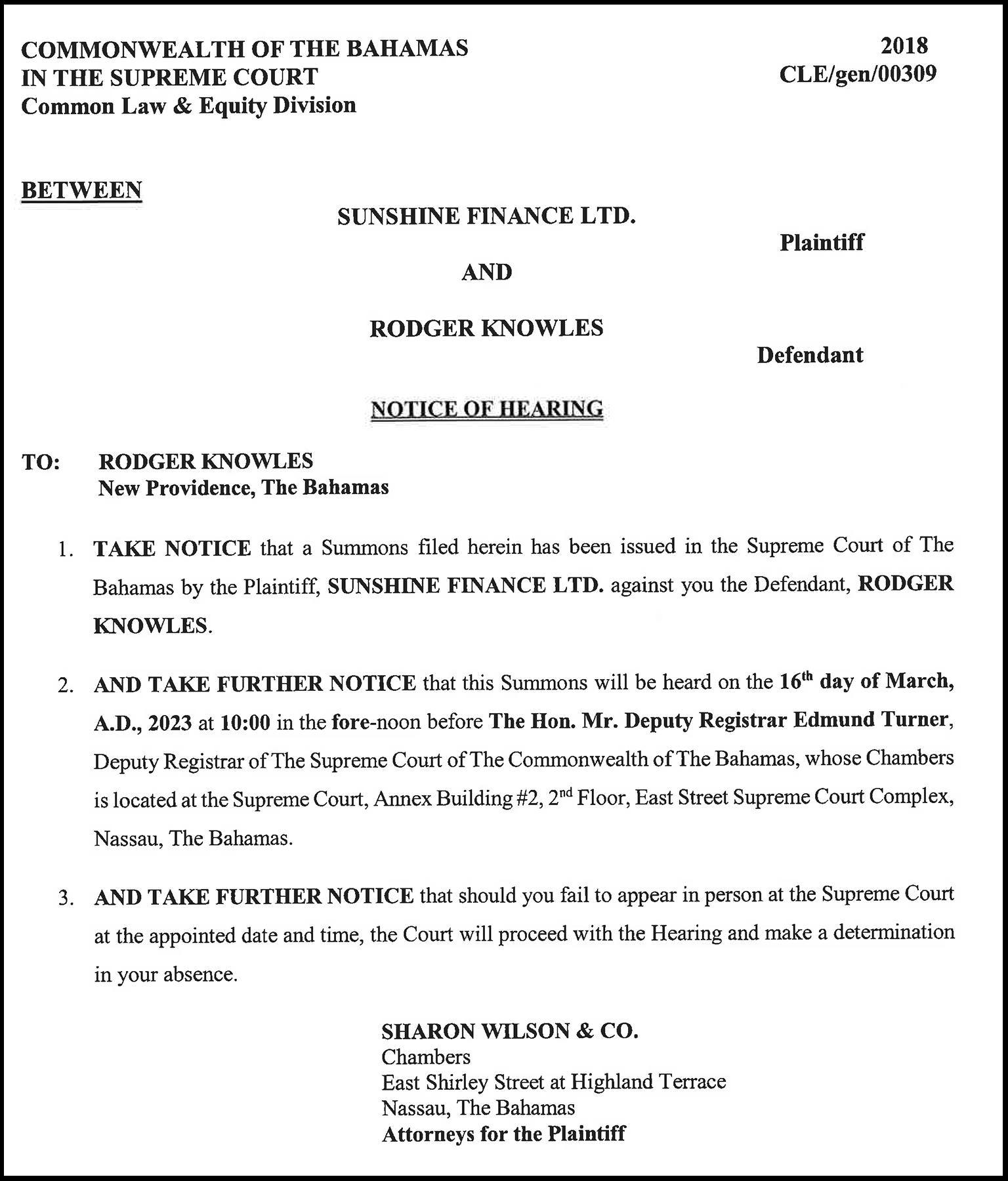 “The defendants therefore had full notice of the date and time of the hearing and of the substance of the application,” Moss & Associates said, adding that the hearing did not begin until 2.45pm on Wednesday. Attorneys for the FNM did not appear at the hearing.