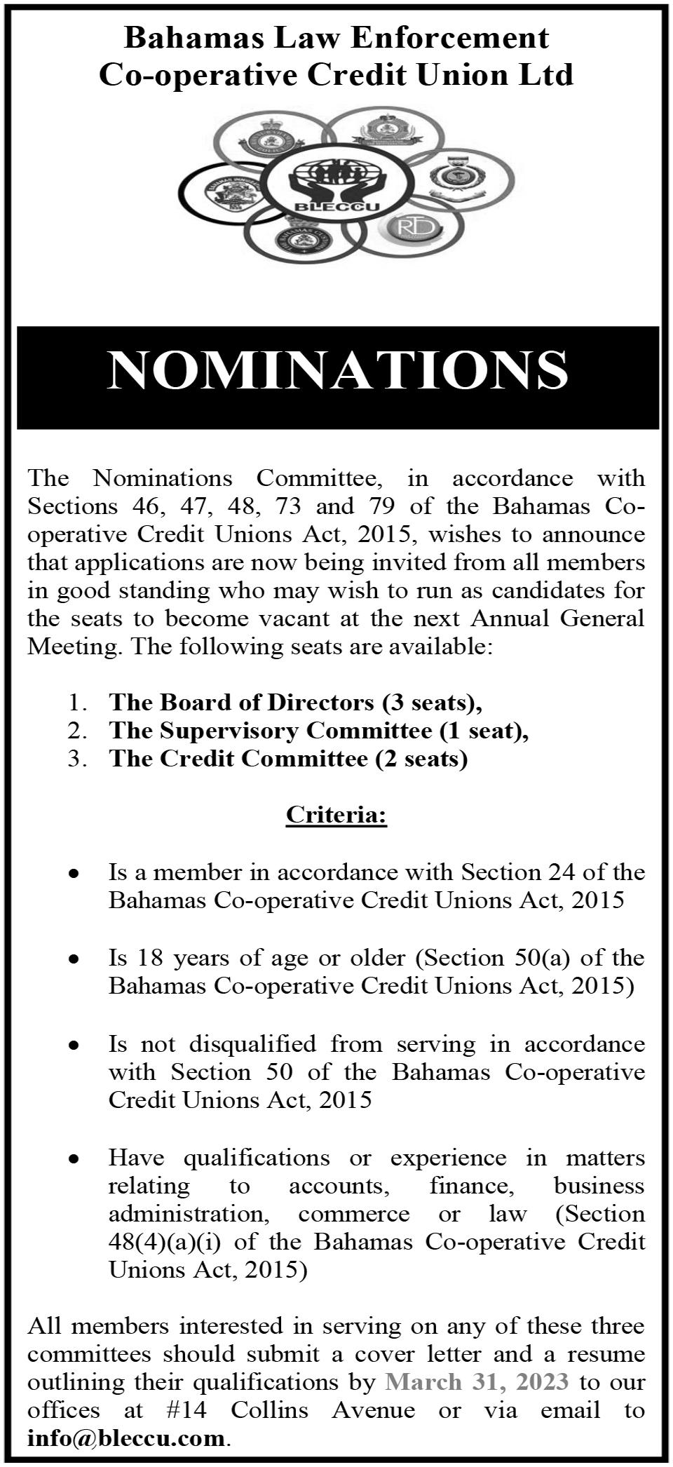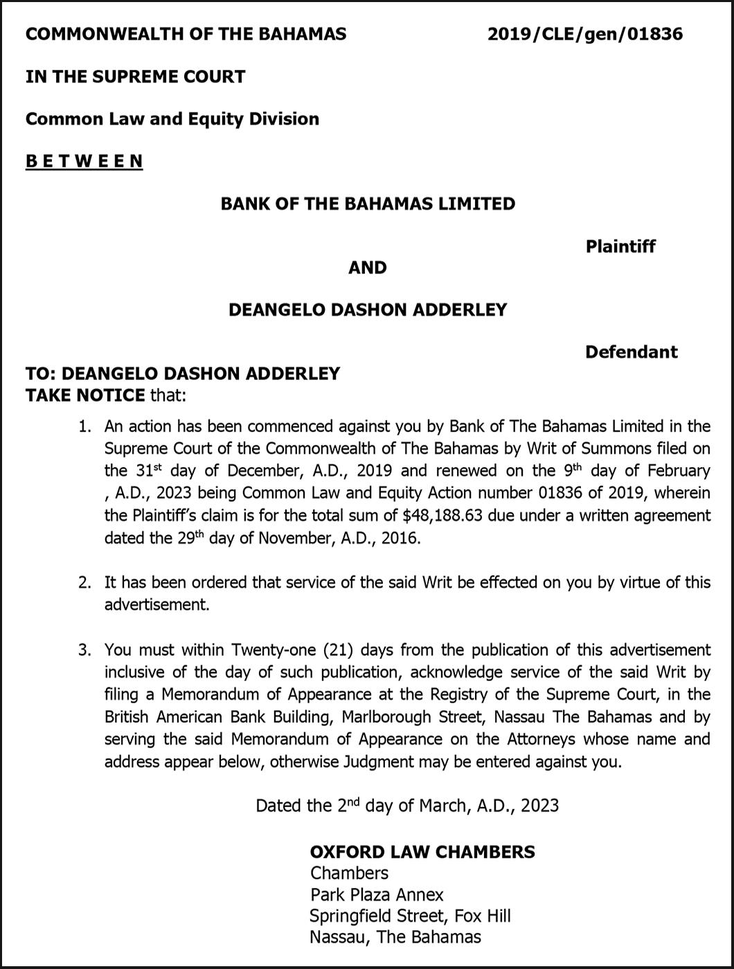 NOTICE is hereby given that WILLIAM DORSAINT of Marsh Harbour, Abaco The Bahamas is applying to the Minister responsible for Nationality and Citizenship, for registration/ naturalization as a citizen of The Bahamas, and that any person who knows any reason why registration/naturalization should not be granted, should send a written and signed statement of the facts within twenty-eight days from the 13th day of March, 2023 to the Minister responsible for nationality and Citizenship, P.O. Box N-7147, Nassau, Bahamas.