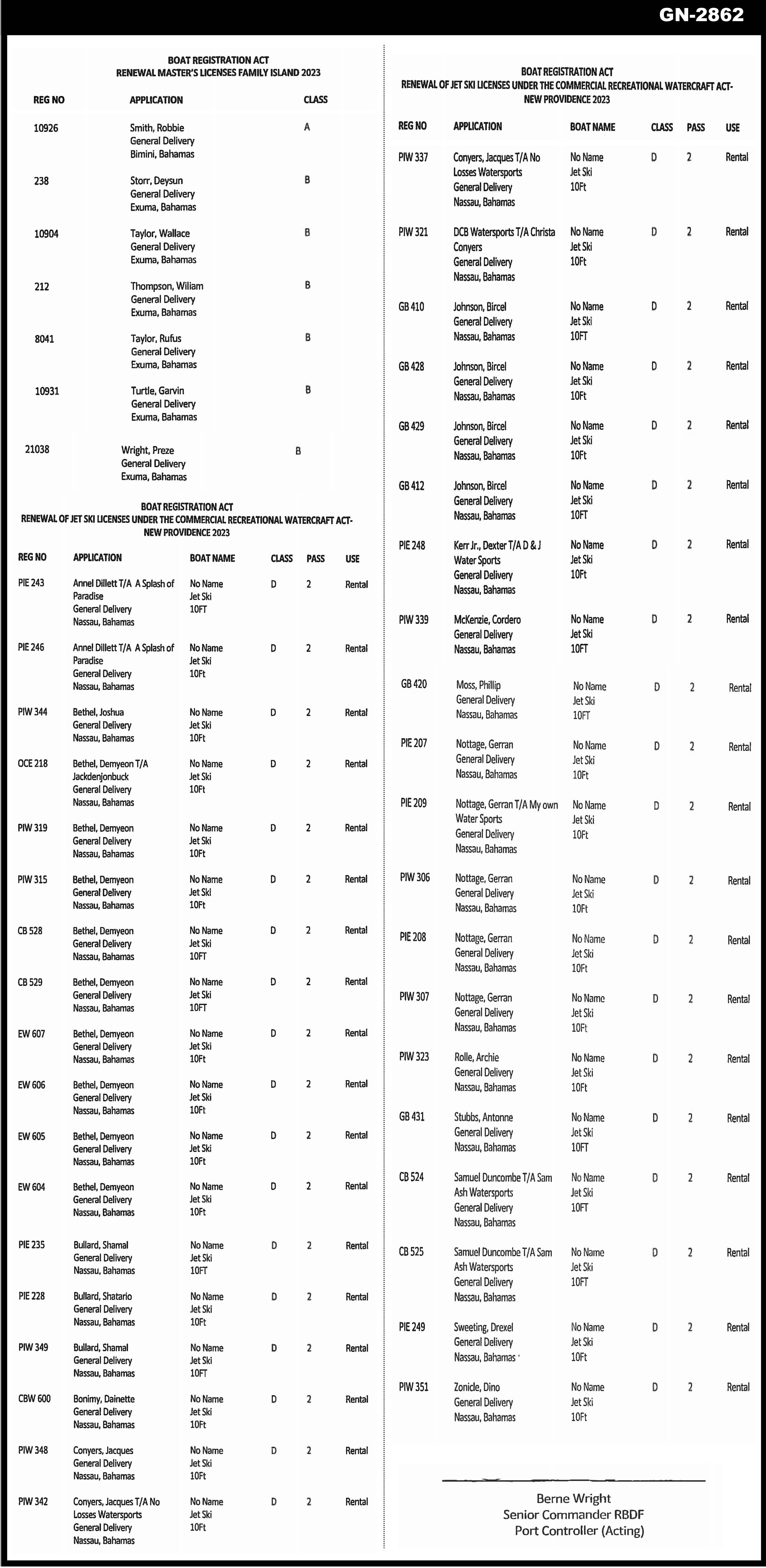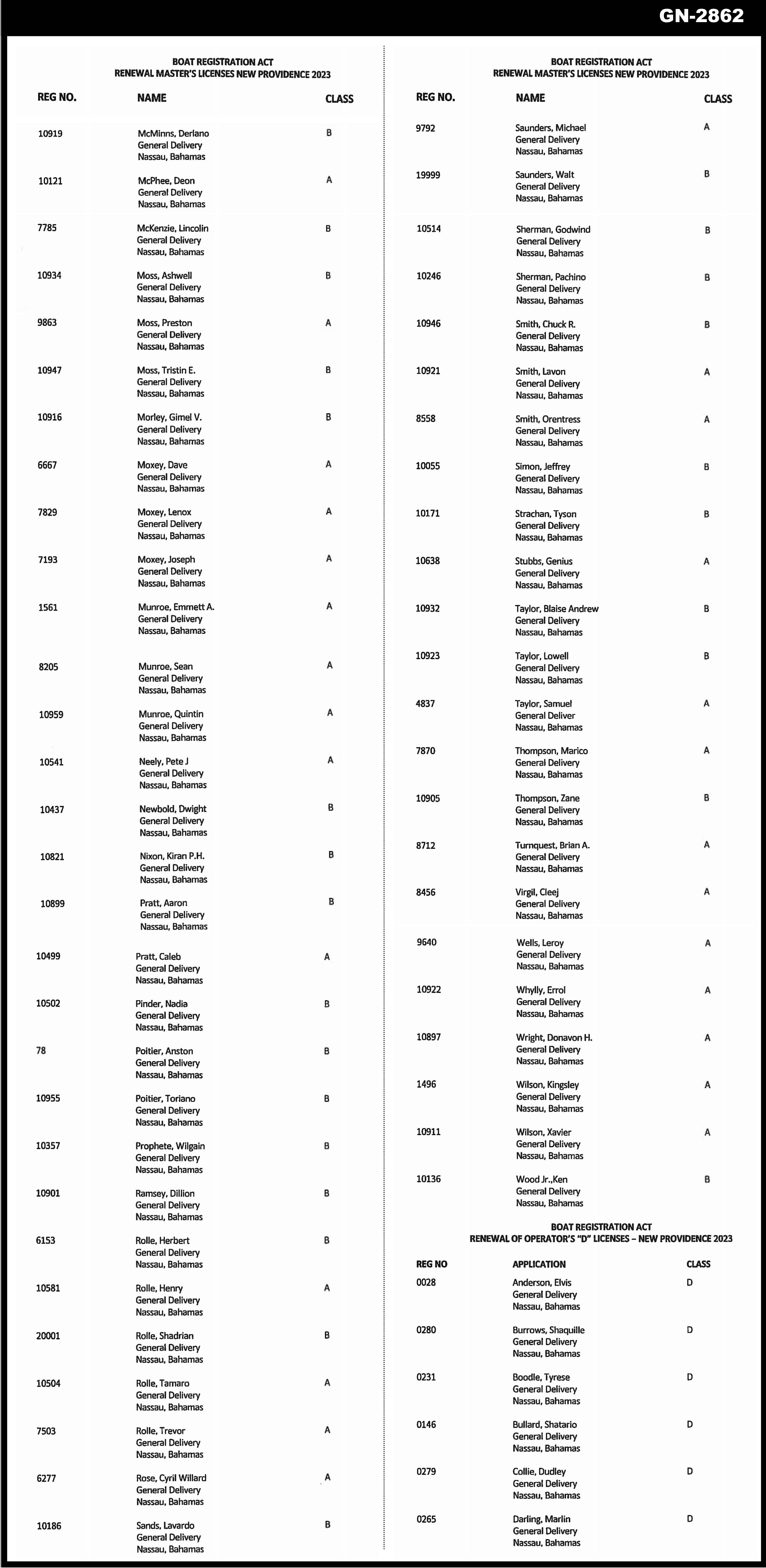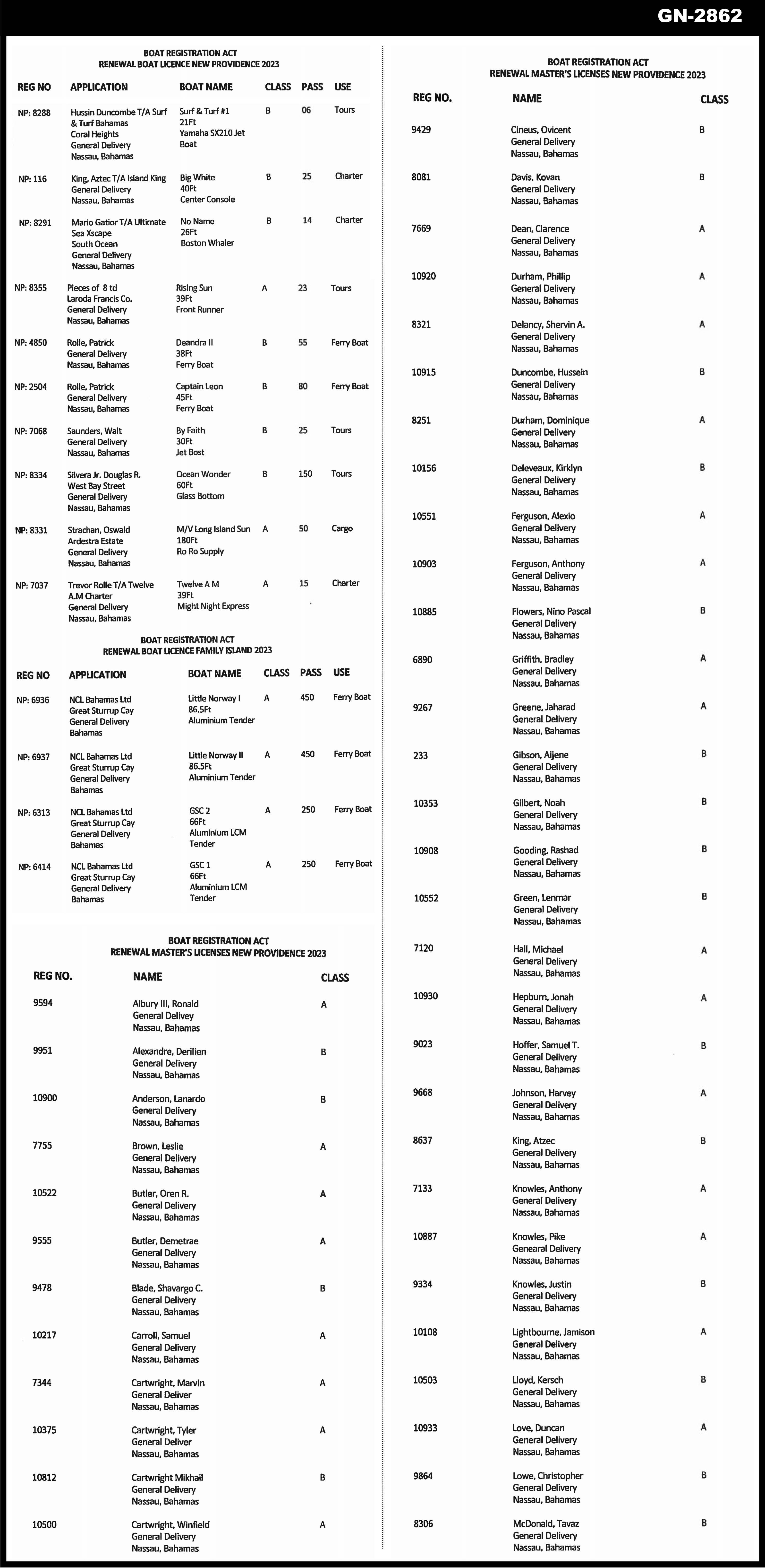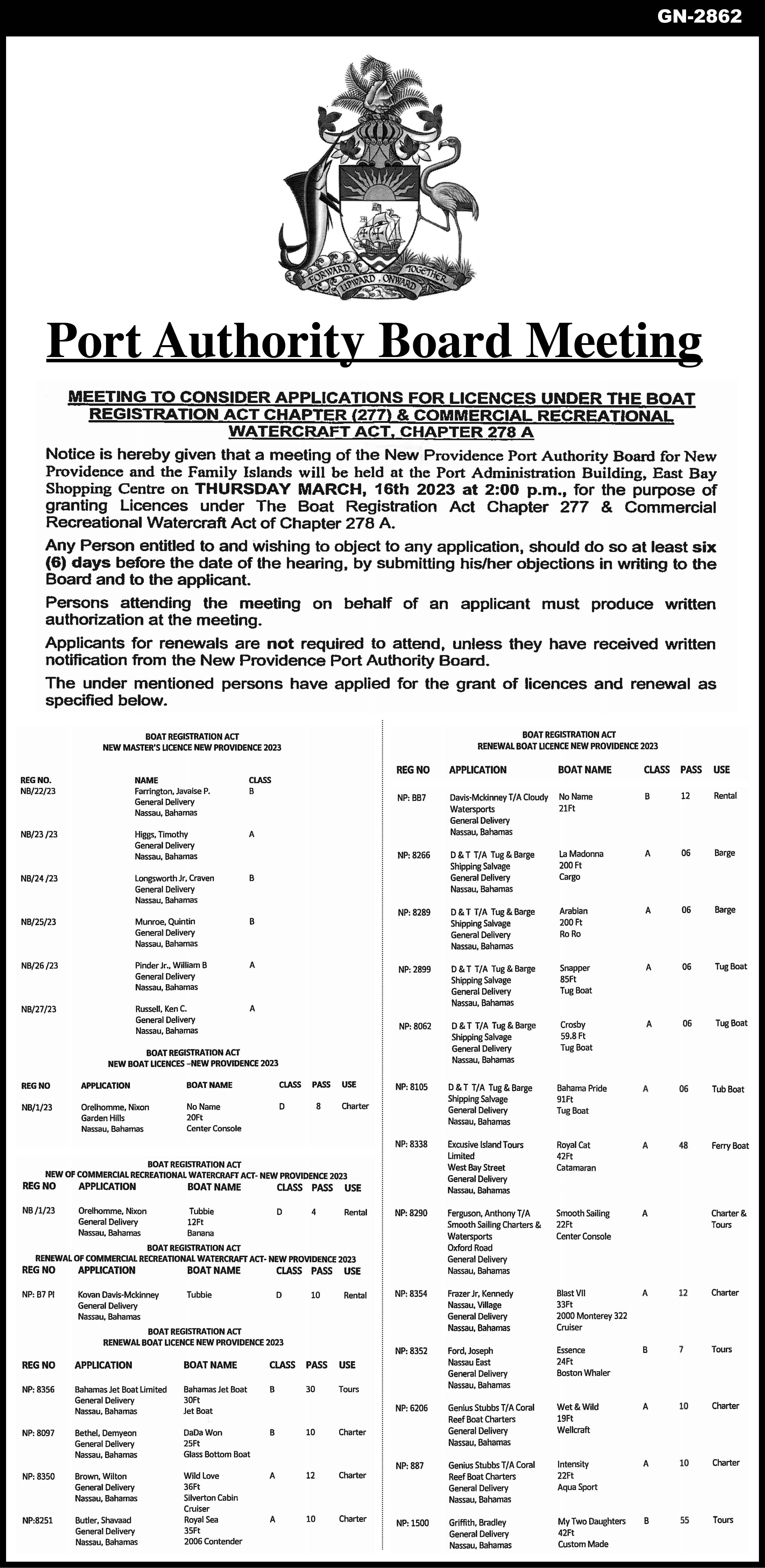 NOTICE is hereby given that JENIKA NOCIUS of #2 Garden Hills, P.O. Box N-902, New Providence, The Bahamas is applying to the Minister responsible for Nationality and Citizenship, for registration/ naturalization as a citizen of The Bahamas, and that any person who knows any reason why registration/naturalization should not be granted, should send a written and signed statement of the facts within twentyeight days from the 8th day of March, 2023 to the Minister responsible for nationality and Citizenship, P.O. Box N-7147, Nassau, Bahamas.