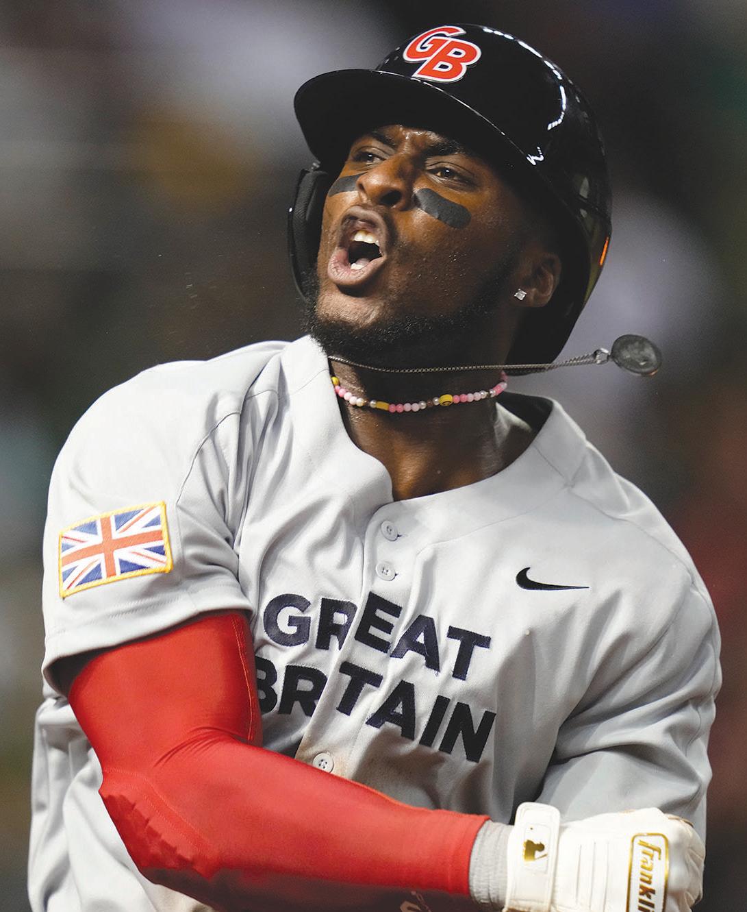 GREAT Britain’s Chavez Young, of the Bahamas, celebrates after scoring against Mexico on BJ Murray Jr’s single during the sixth inning of a World Baseball Classic game in Phoenix on March 14, 2023.