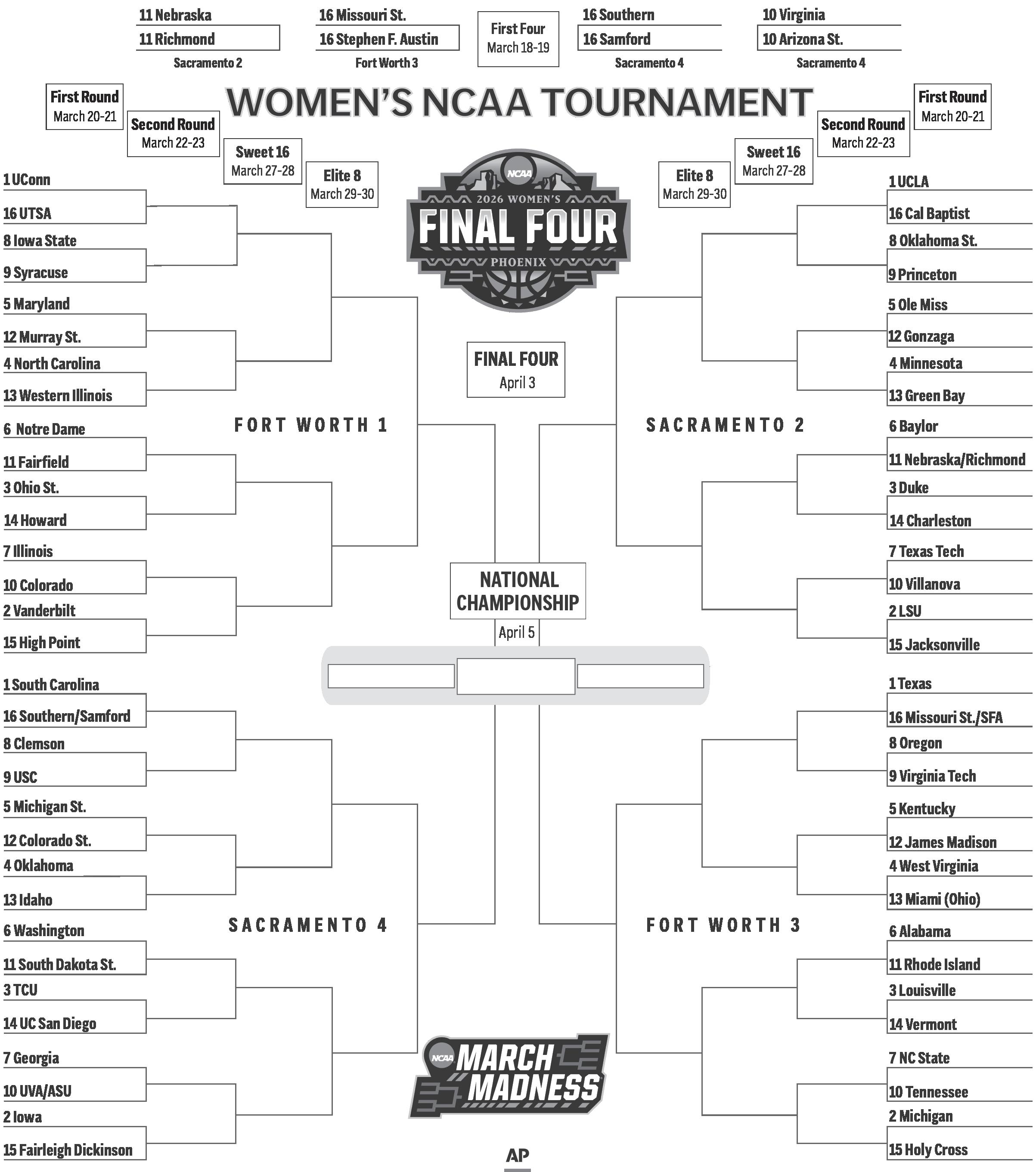 Fellow No. 1 seeds UCLA, Texas and South Carolina will be the biggest challengers as the annual tradition