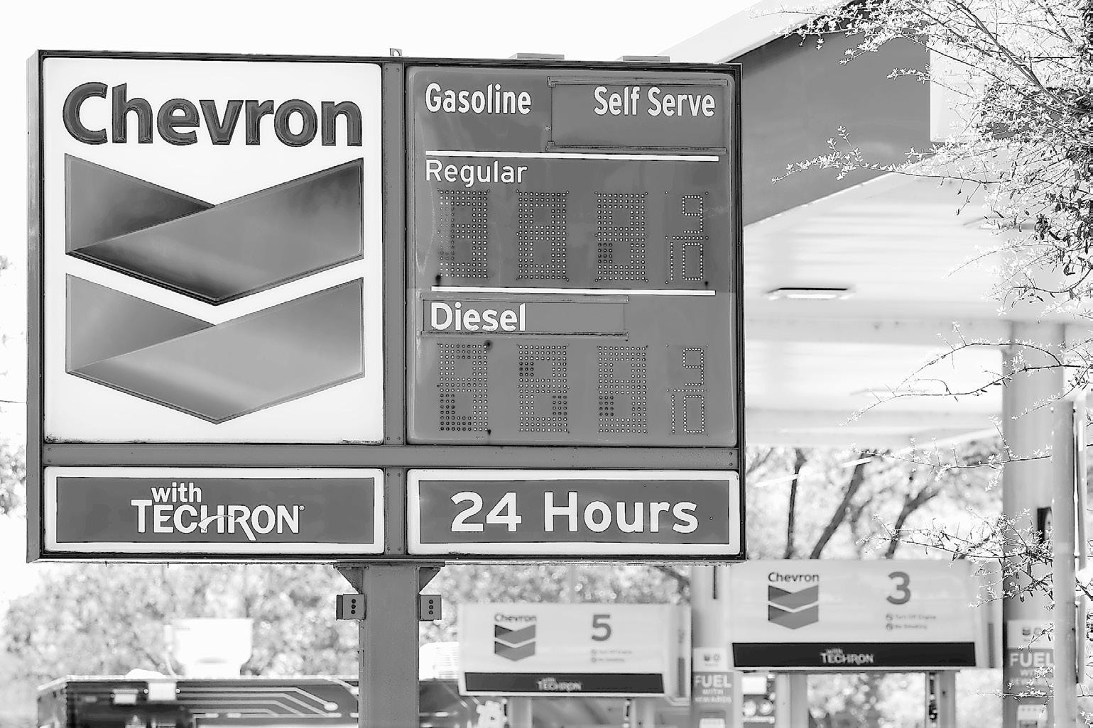 PRICES are displayed on a Chevron gas station sign in Houston, Tuesday, March 17, 2026. Photo:Ashley Landis/AP