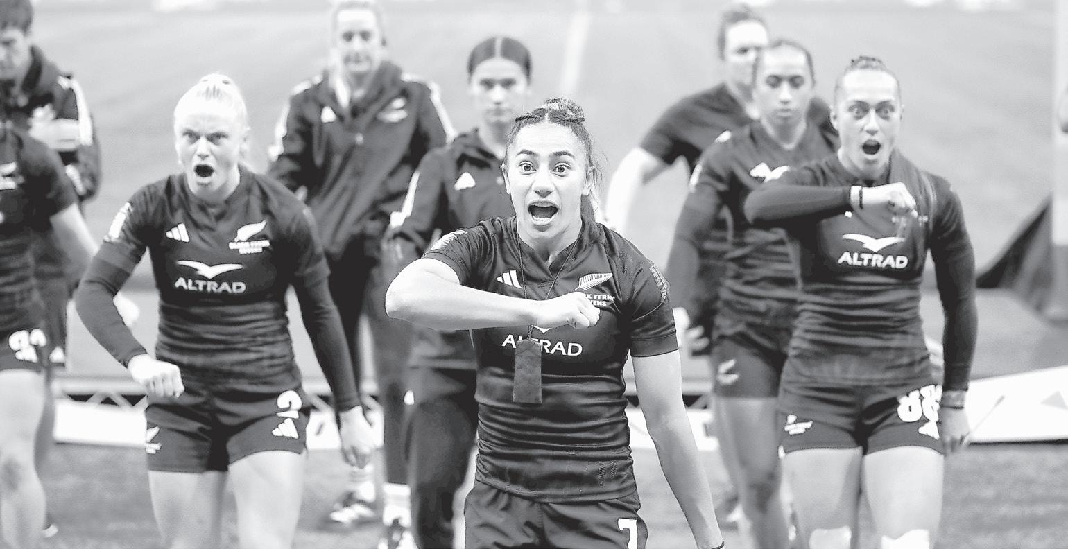 NEW Zealand’s Risi Pouri-Lane (7) leads her teammates in a haka after defeating Australia during gold medal Vancouver Sevens women’s rugby action, in Vancouver, on Sunday, March 8, 2026.