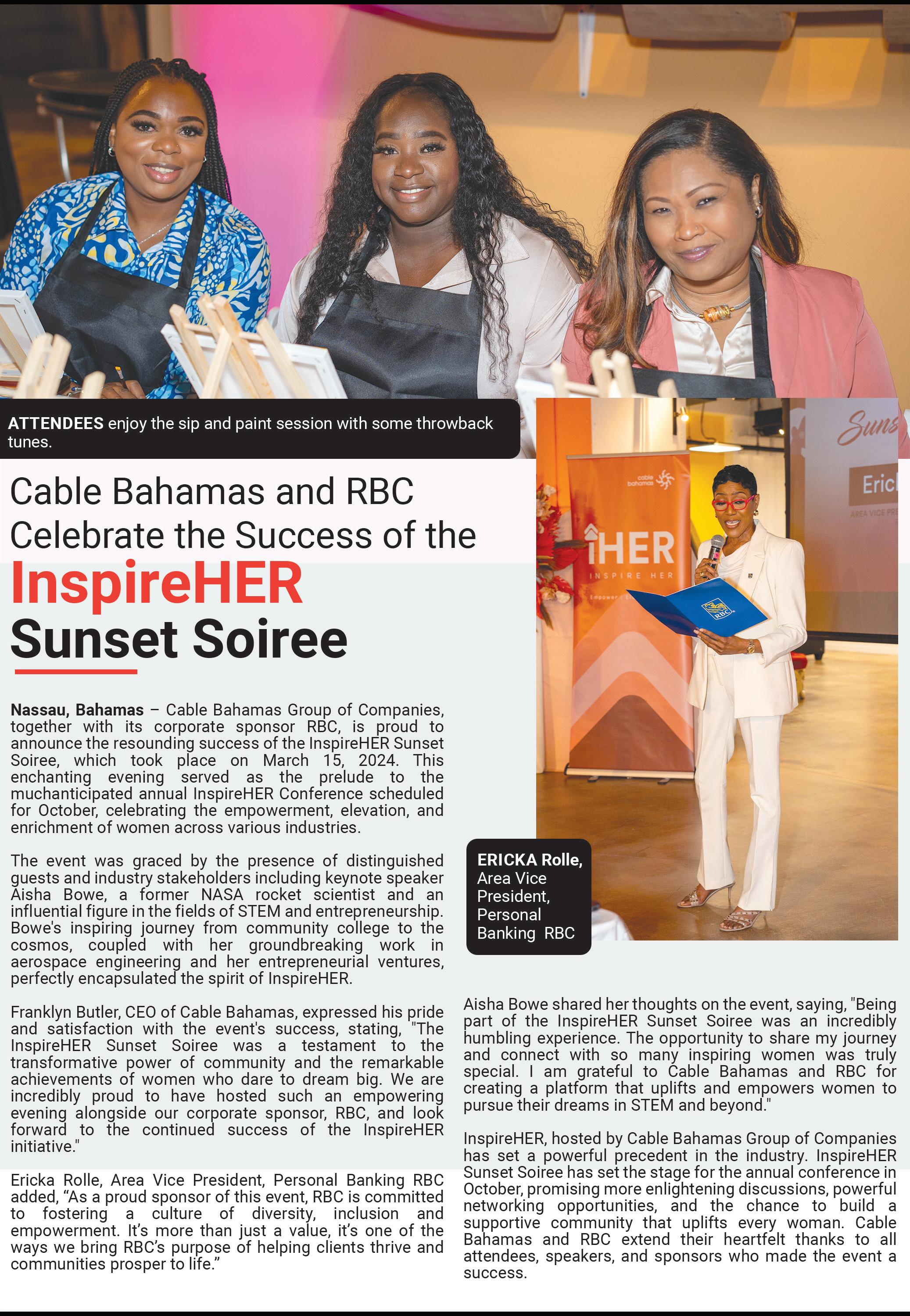 InspireHER Sunset Soiree has set the stage for the annual conference in October, promising more enlightening discussions, powerful networking opportunities, and the chance to build a supportive community that uplifts every woman. Cable Bahamas and RBC extend their heartfelt thanks to all attendees, speakers, and sponsors who made the event a success.