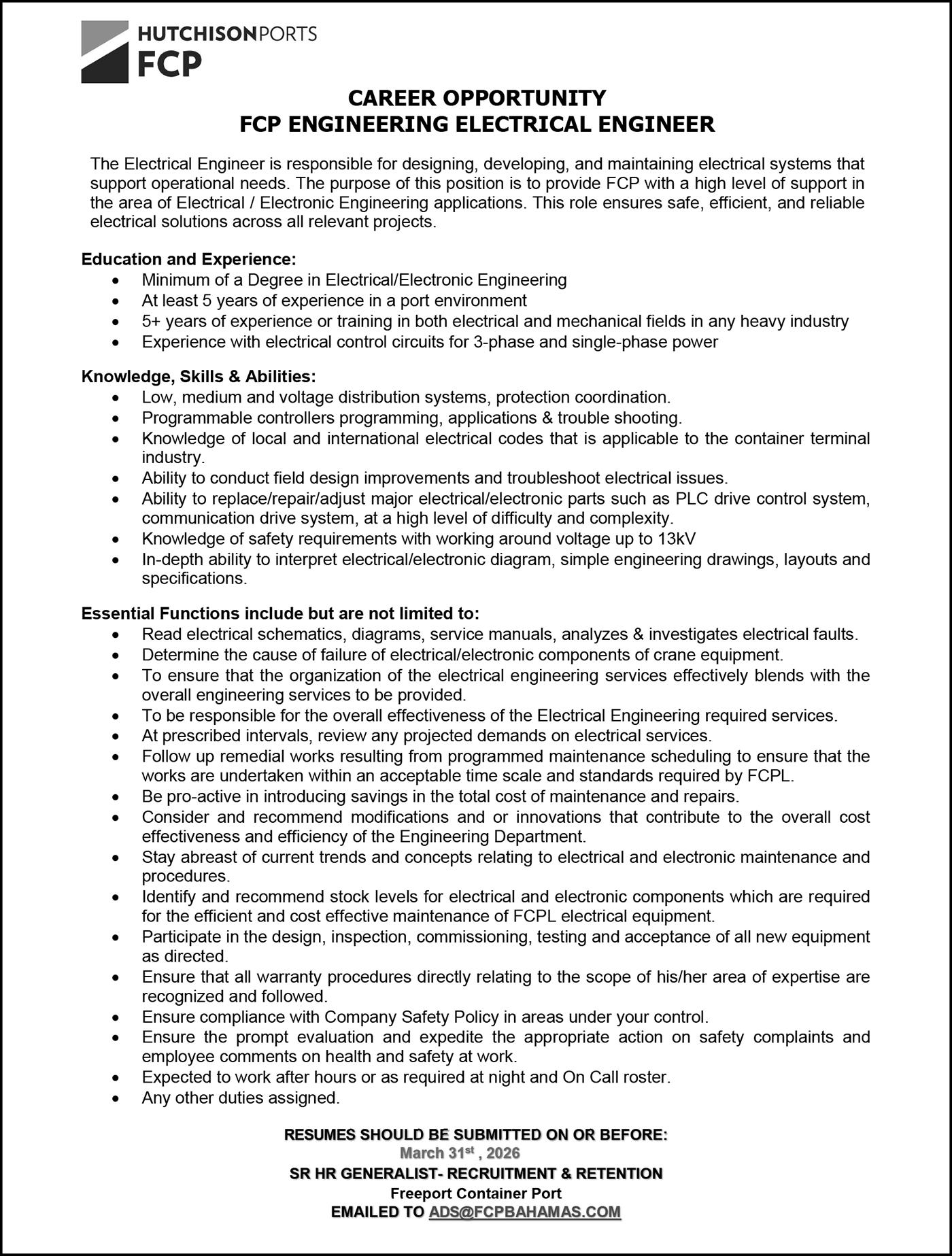 director of operations and human resources, making invaluable contributions to the development and operational strength of Bahamas