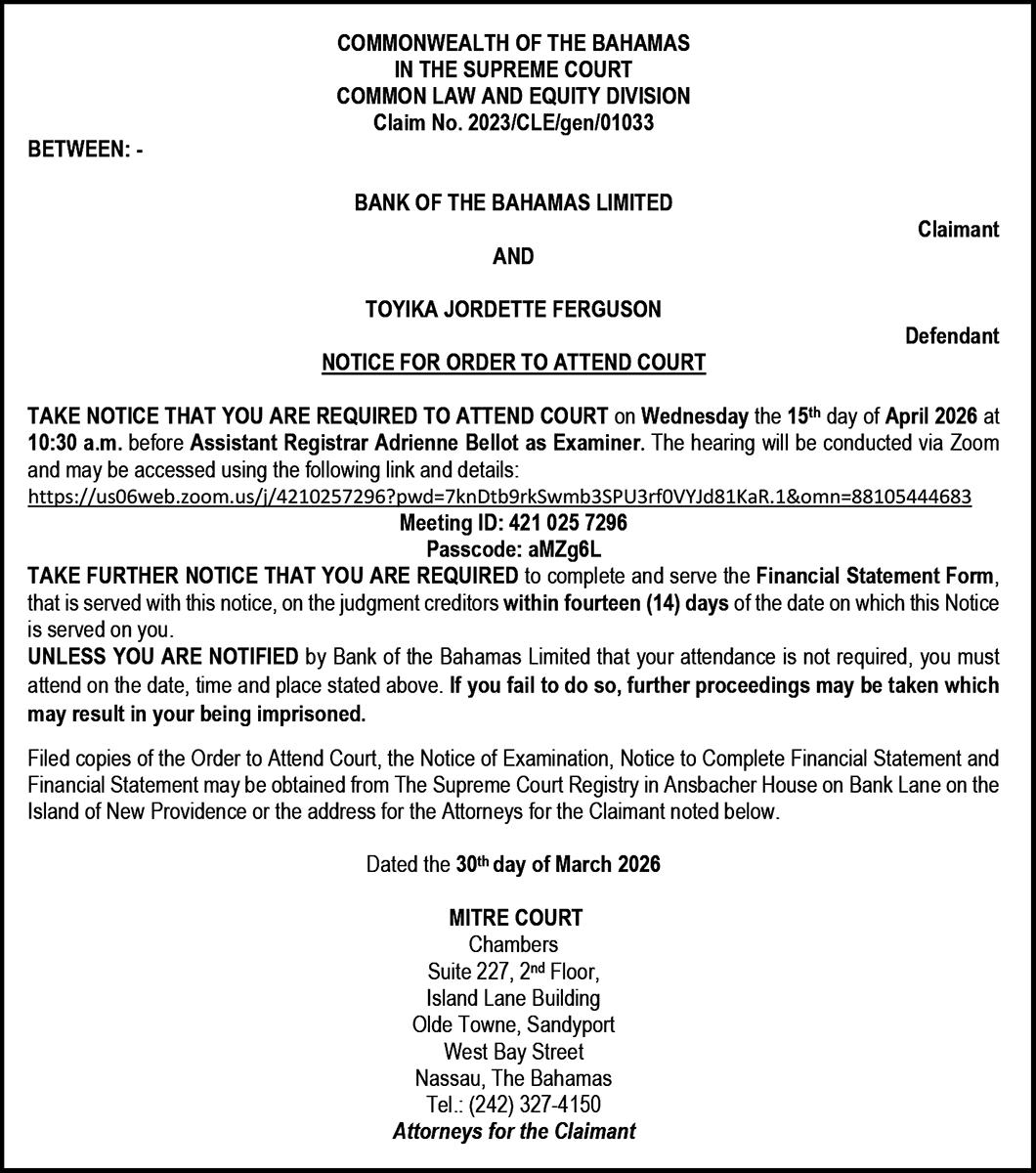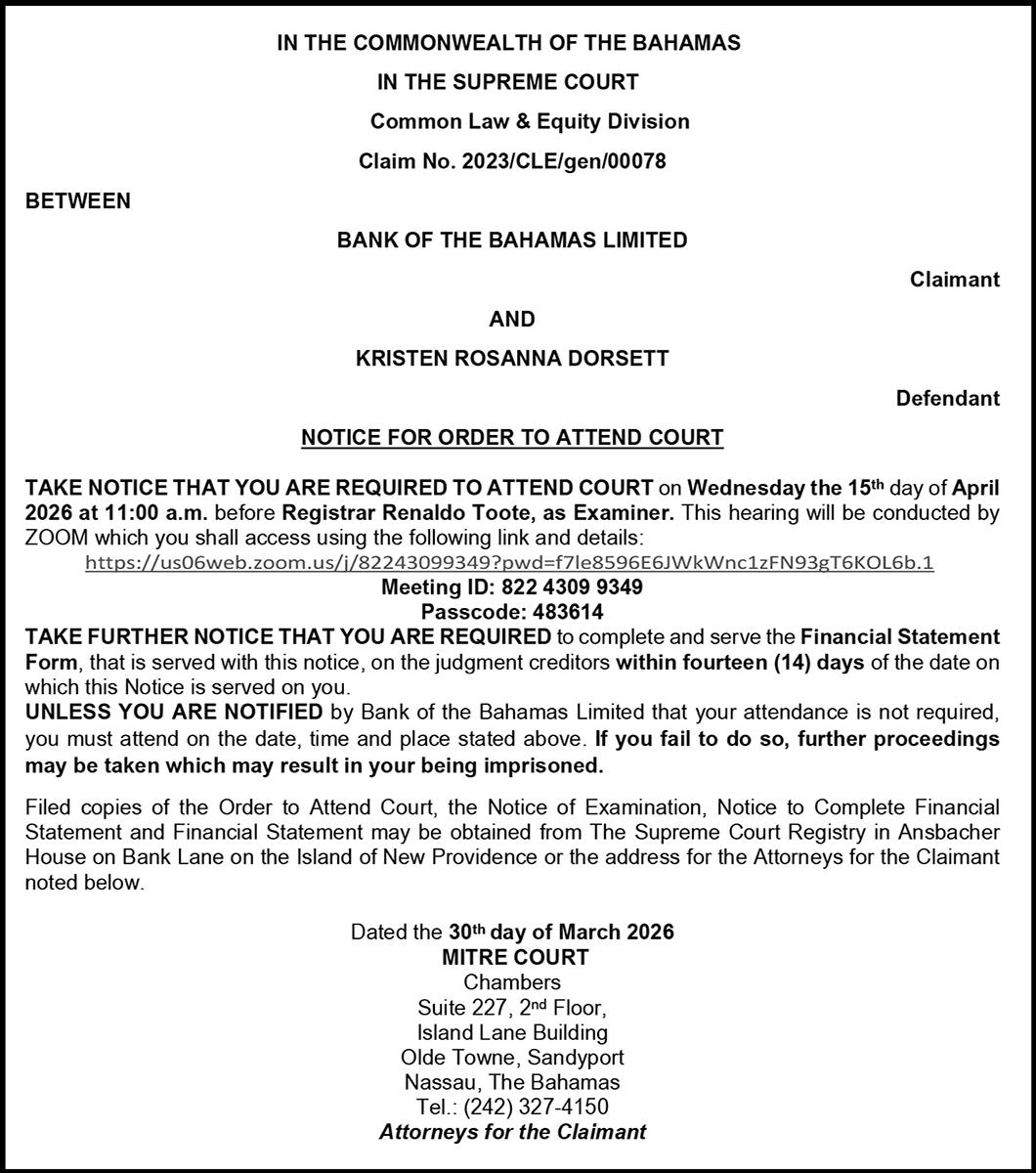 BY NEIL HARTNELL Tribune Business Editor