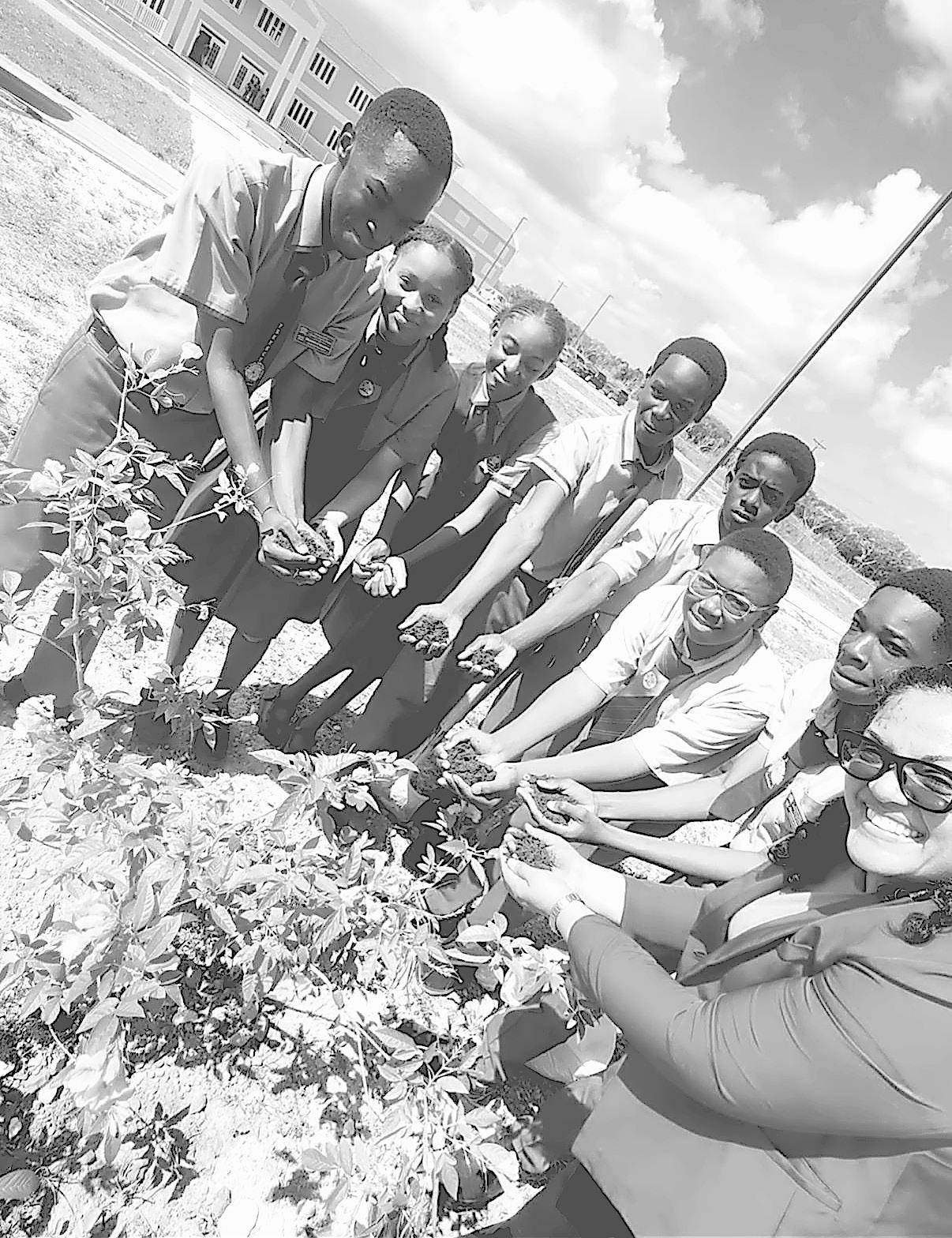 two Yellow Elder trees at Holmes Rock Junior High School in Grand Bahama this week as part of its Forestry Awareness Week activities.