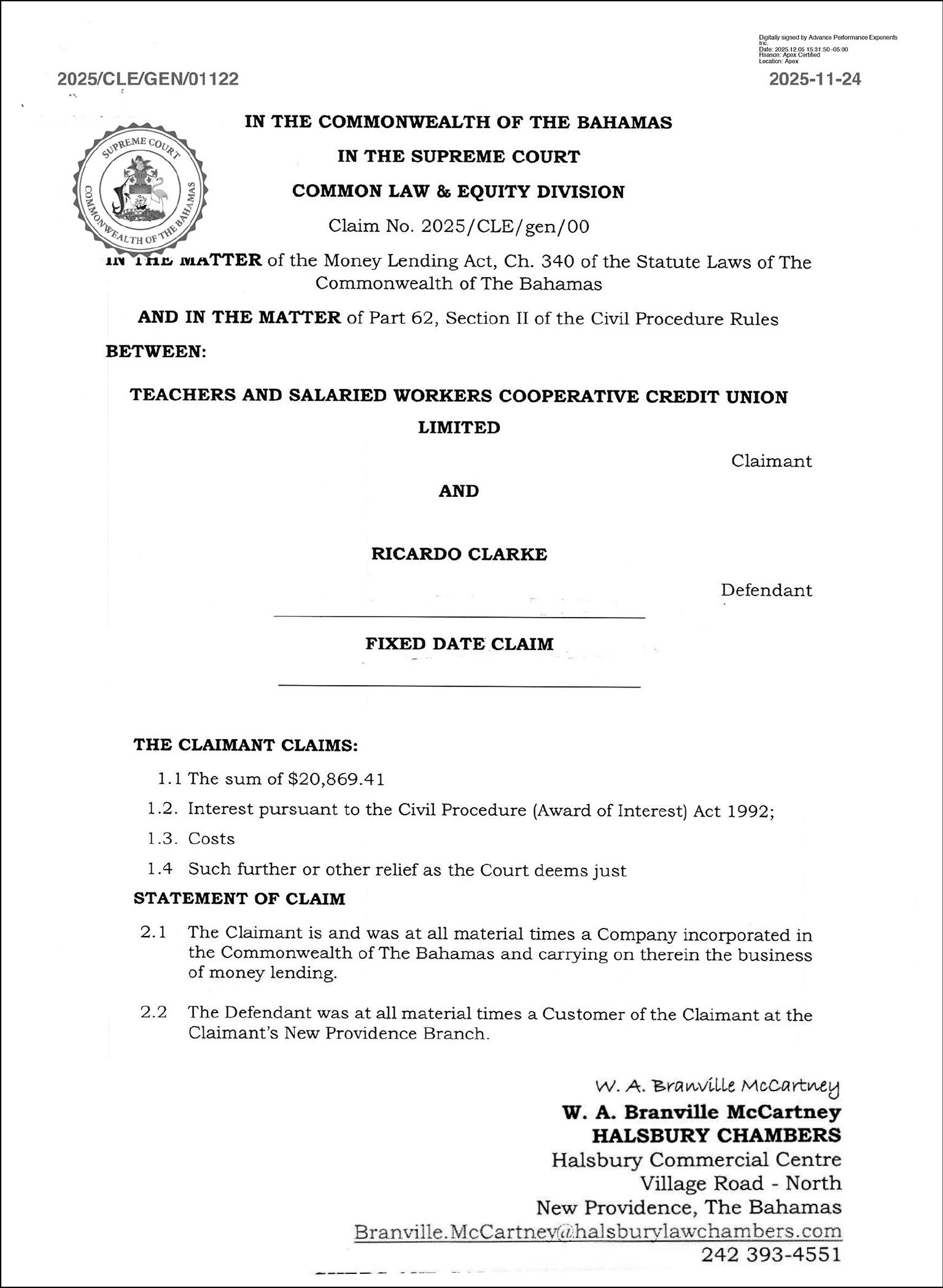 NOTICE is hereby given that I AZAIR ACCIVIL CAMEUS of The Bluff, Eleuthera, The Bahamas, is applying to the Minister responsible for Nationality and Citizenship, for Registration Naturalization as a citizen of The Bahamas, and that any person who knows any reason why registration/naturalization should not be granted, should send a written and signed statement of the facts within twenty-eight days from the 2nd day of April, 2026 to the Minister responsible for nationality and Citizenship, P.O. Box N-7147, Nassau, New Providence, The Bahamas.
