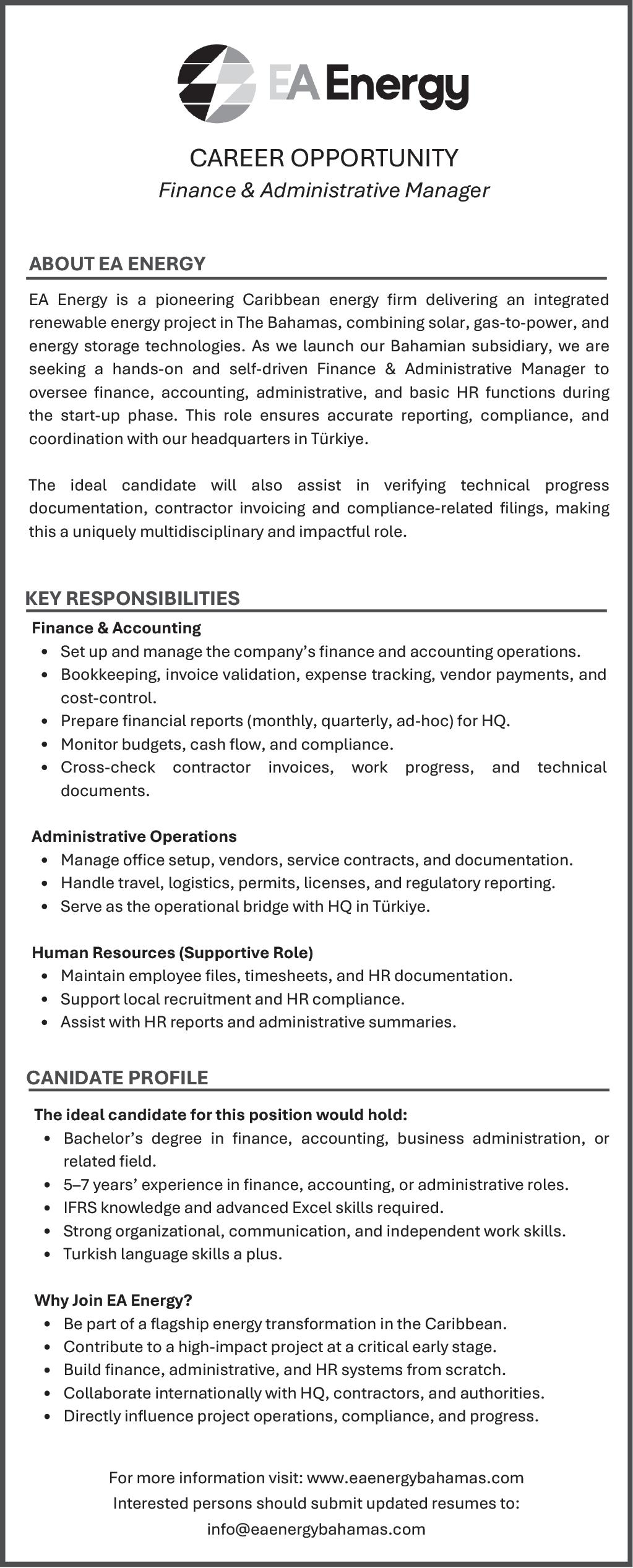 Jarol Investments Limited is seeking to fill the following position: Island Manager (Abaco)