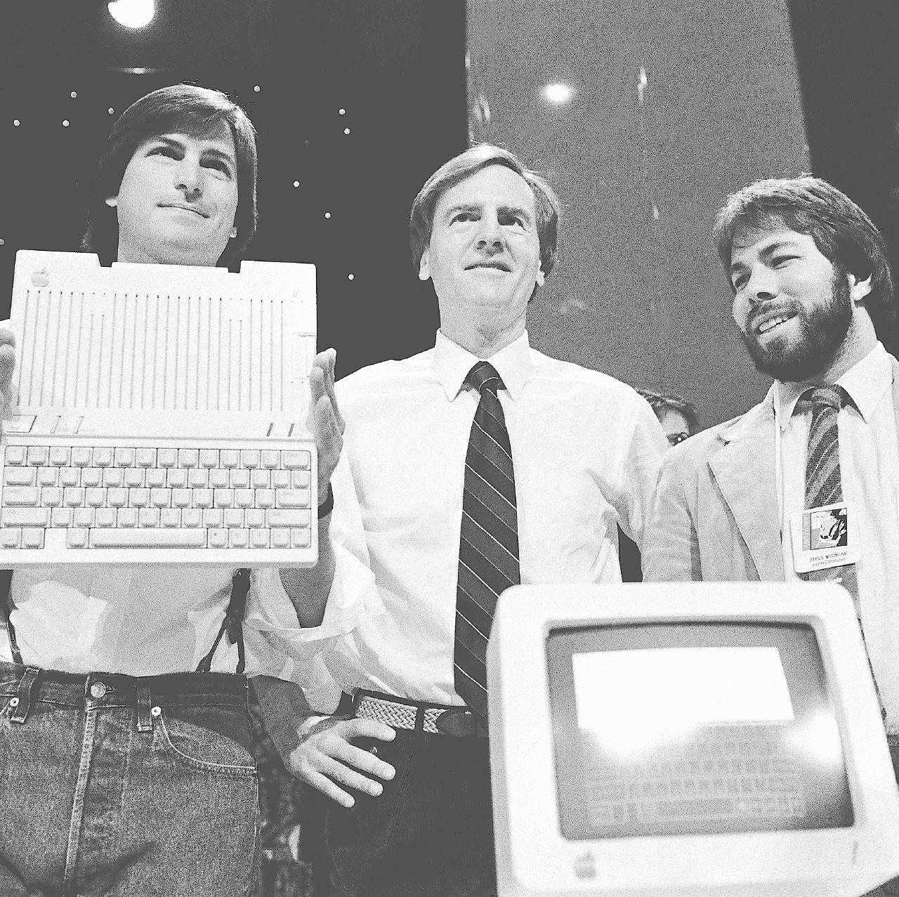 Jobs introduced the first iPod inOctober 2001,amusic storage device that initially couldhold upto 1,000songs. Applewouldsell450millionof the devicesin differentdesigns whileall butkilling theCD format and settingthe stage for the age of music streaming.