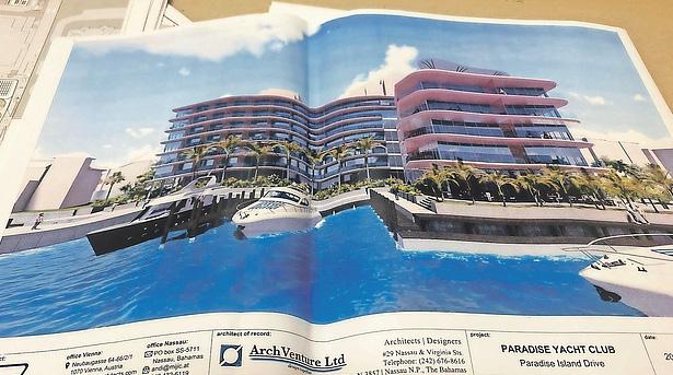 submitted to the regulator in April 2023. Brent Creary, principal with ArchVenture Ltd and the project’s Bahamian architect, told physical planning chief, Charles Zonicle, that “the primary structure of the project sits on the site of the former Paradise Harbour Club and former Columbus Tavern”. The location was described in accompanying documents as “land currently in a state of disrepair and unused”.