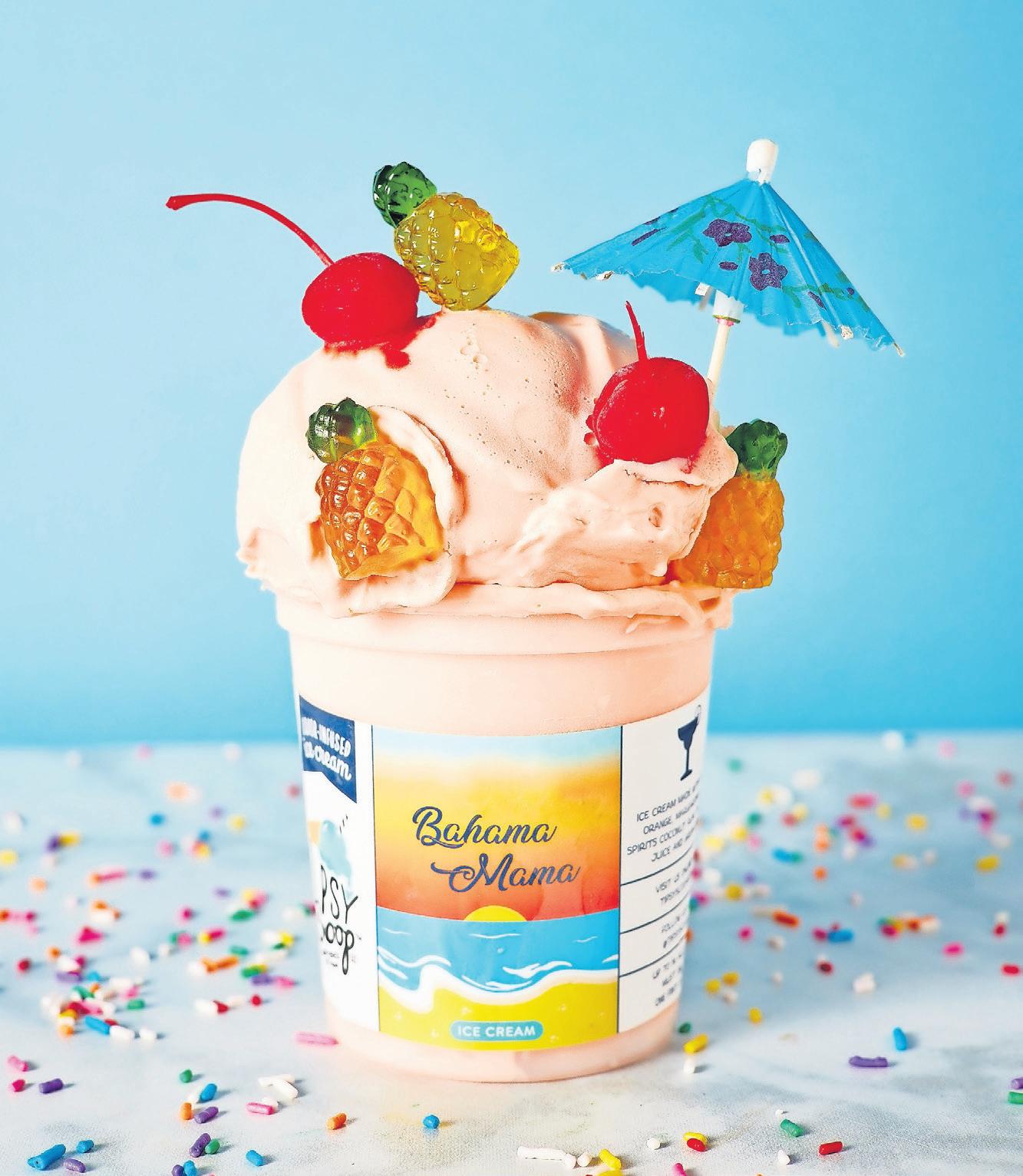 The brand is also known for its overthe-top cocktail-inspired sundaes like the ‘Tequila Sunrise’ a mango margarita and strawberry sangria sorbet with grenadine syrup, fresh orange, gummy cherries and a sunshine lollipop; or the “It’s My Party”, a cake batter vodka martini ice cream with vanilla frosting and rainbow sprinkles, topped with gummy bears, cone pieces and an extra