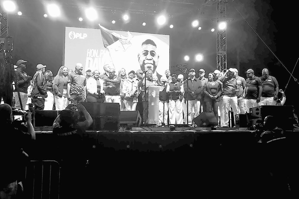 The rally featured a slate of speakers, including Fred Mitchell, Keno Wong, Leslia Brice, Lisa Rahming, Zane Lightbourne, Sebas Bastian, Jobeth Coleby-Davis and Glenys Hanna-Martin. Deputy Prime Minister Chester Cooper and Prime Minister Philip “Brave” Davis delivered the headline speeches,