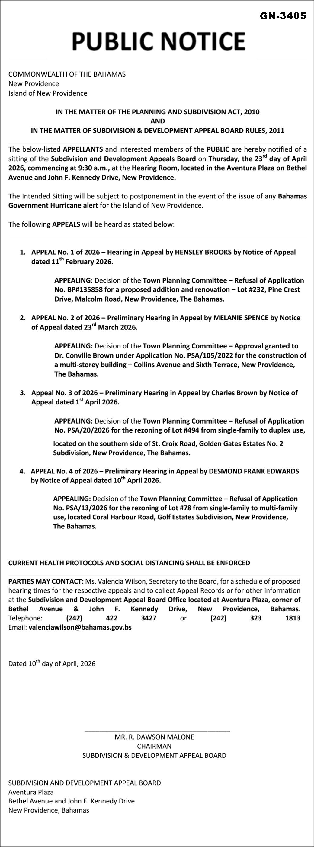 reason why registration/naturalization should not be granted, should send a written and signed statement of the facts within twentyeight days from the 15th day of April, 2026 to the Minister responsible for nationality and Citizenship, P.O. Box N-7147, Nassau, New Providence, The Bahamas.