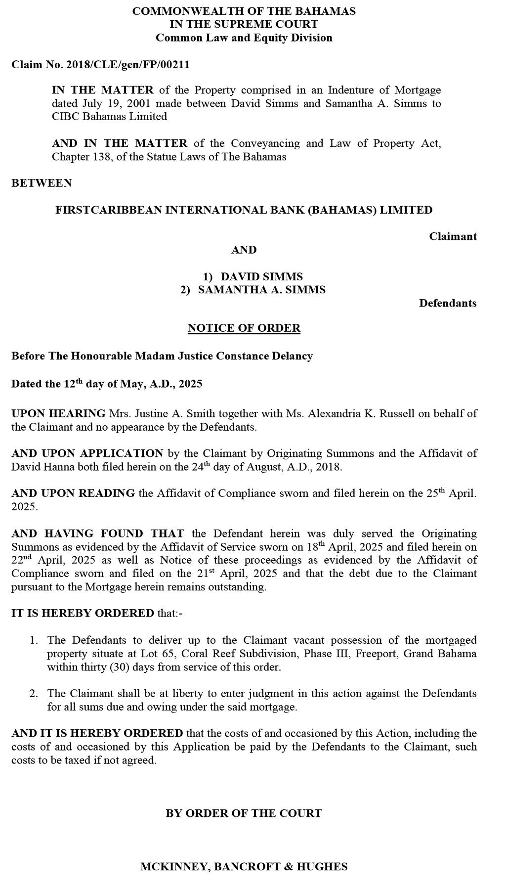Notice is hereby given that the above-named Company is in dissolution, commencing on the 23rd day of March, 2026 . Articles of Dissolution have been duly registered by the Registrar. The Liquidator is Richard L. Broughton, No 6 Bosham Close, Camperdown Heights, P.O. Box SP63801, NP, The Bahamas. Persons having a Claim against the above-named Company are required on or before the 22nd day of April, 2026 to send their names, addresses and particulars of their debts or claims to the Liquidator of the Company, or in default thereof they may be excluded from the benefit of any distribution made before such claim is proved.
