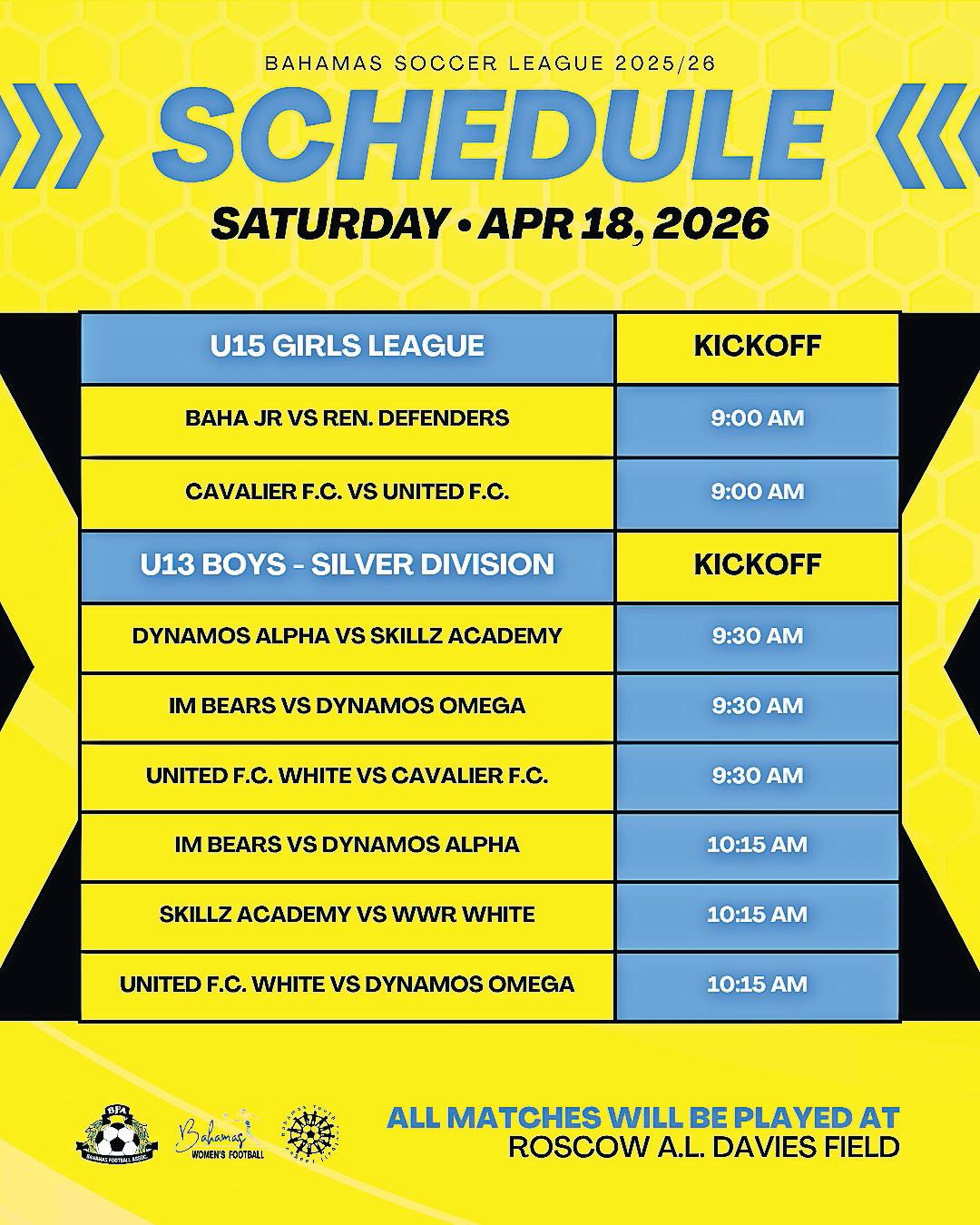 Division II - Grand Bahama D2 vs Eleuthera D2; New Providence D2 vs Abaco D2.