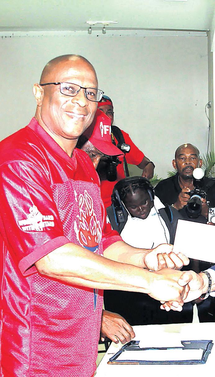 Mr Bonaby, flanked by party supporters, declined to engage with The Tribune after filing his nomination papers at Government High School ahead of the general election.