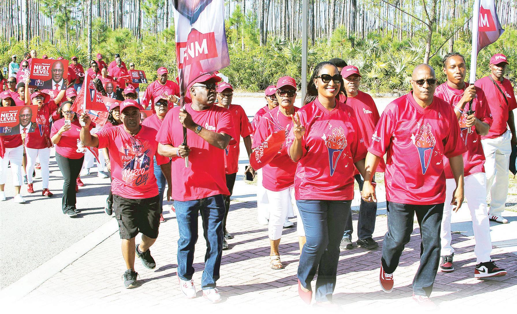 In Grand Bahama, FNM leader Michael Pintard was nominated in Marco City, arriving at the Belinda Wilson Convention Centre with a large crowd and a decorated truck leading the procession.