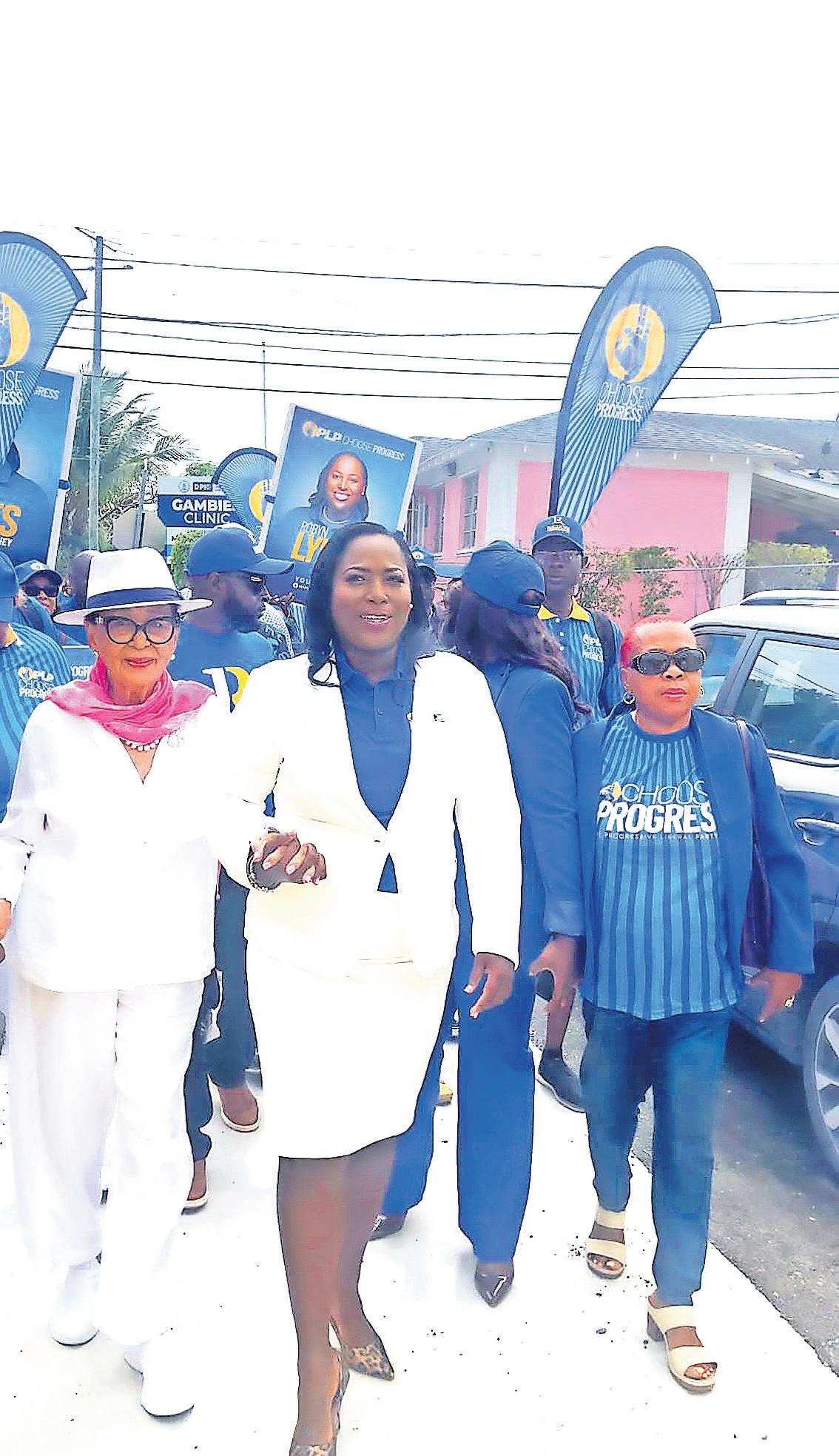 PLP candidate Robyn Lynes also entered the race, appearing alongside former Governor General Dame Marguerite Pindling, who publicly backed her candidacy.