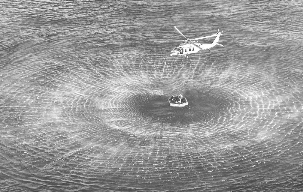moments of a touch of char loss" to the heat shield as Integrity plunged through the fastest, hottest part of reentry. Once aboard the recovery ship, they peered at the bottom of the capsule as best they could, leaning over to view any signs of damage. They spotted a little loss of charred material on the shoulder, where the heat shield meets the capsule. "For four humans just looking at the heat shield, it looked wonderful to us.