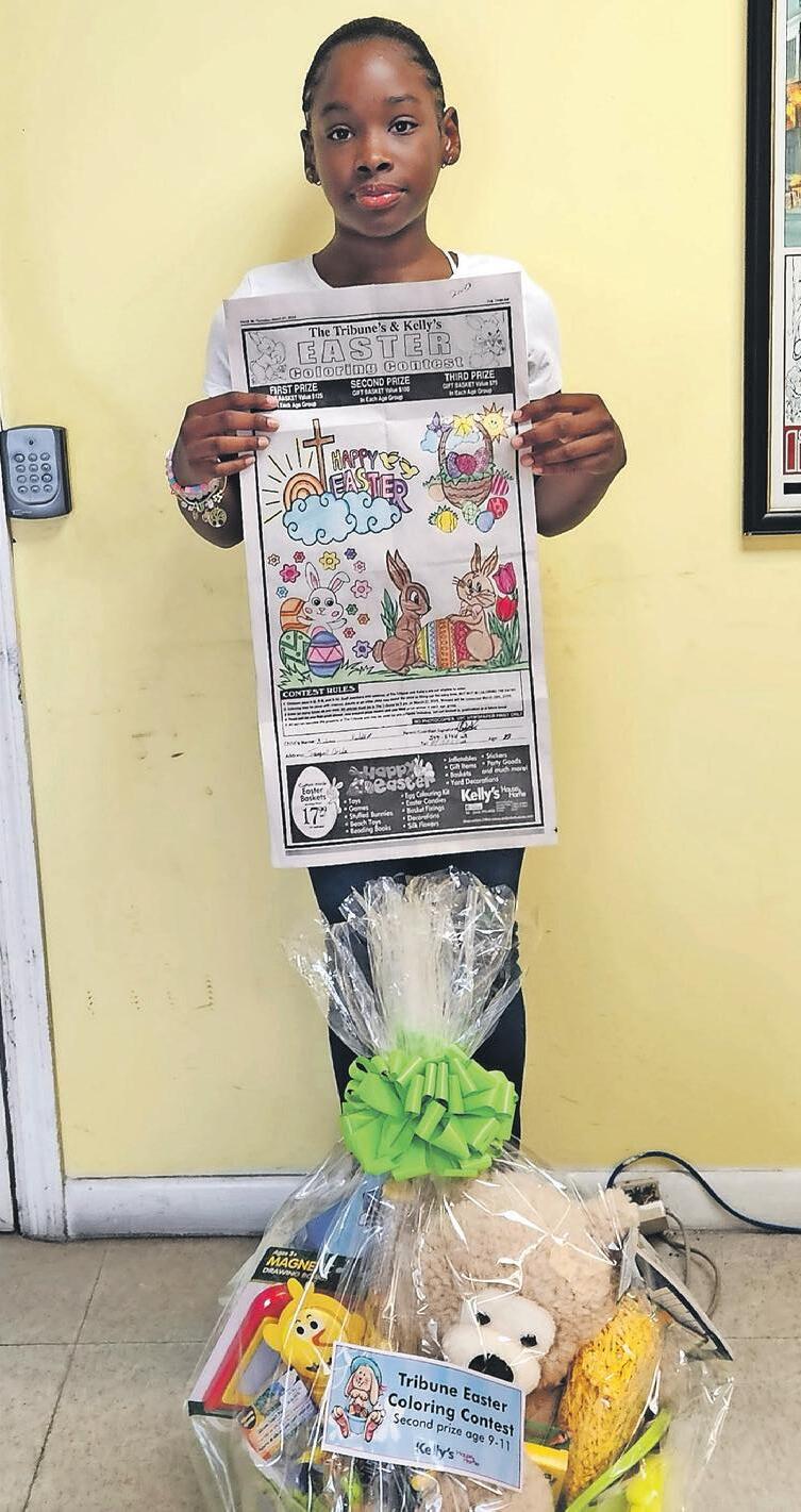 THE WINNERS in Easter colouring contest run by Kelly’s and The Tribune received their prizes recently. Pictured are, from left, top, Lauren Evans (first prize, ages 4-5), second row, Jodi Moxey (winner, 6-8), Autumn Newbold (second, 9-10), third row, Sarah Higgs (second, 4-5), Sanaj Higgs (third, 6-8), bottom row, Faith James (third, 9-10), and Gabriel Joseph (first, 9-10).
