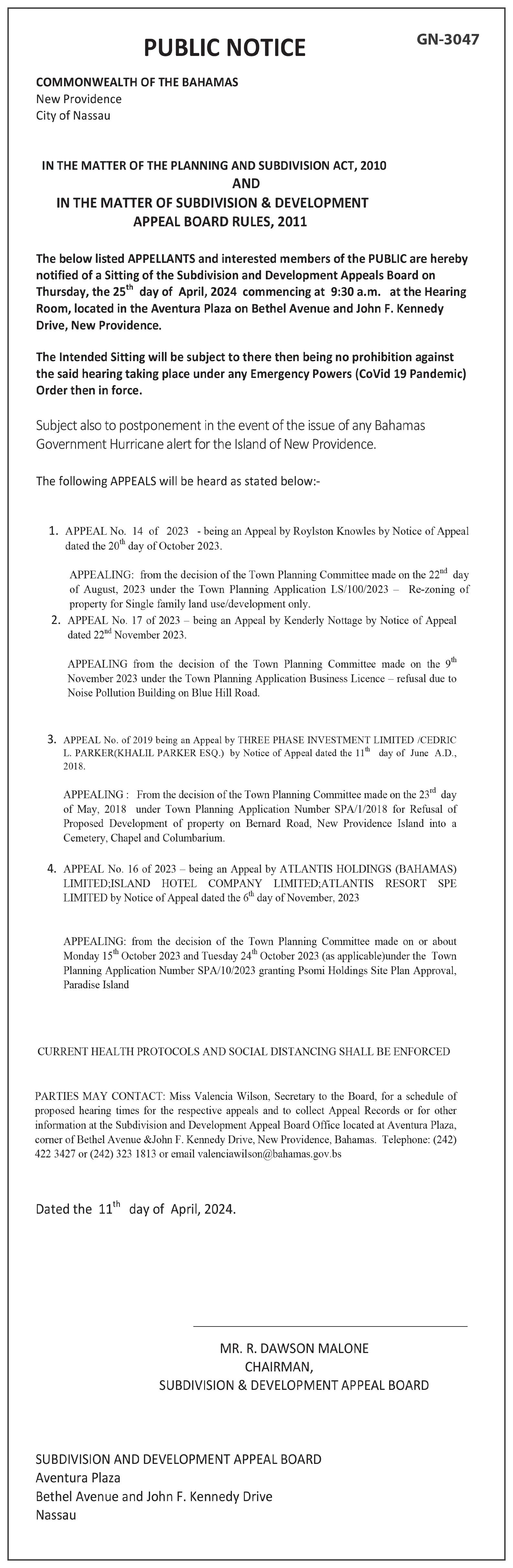 Davis Administration to take legislative action in accordance with public opinion and its own stated agenda of creating a sustainable future for The Bahamas.”