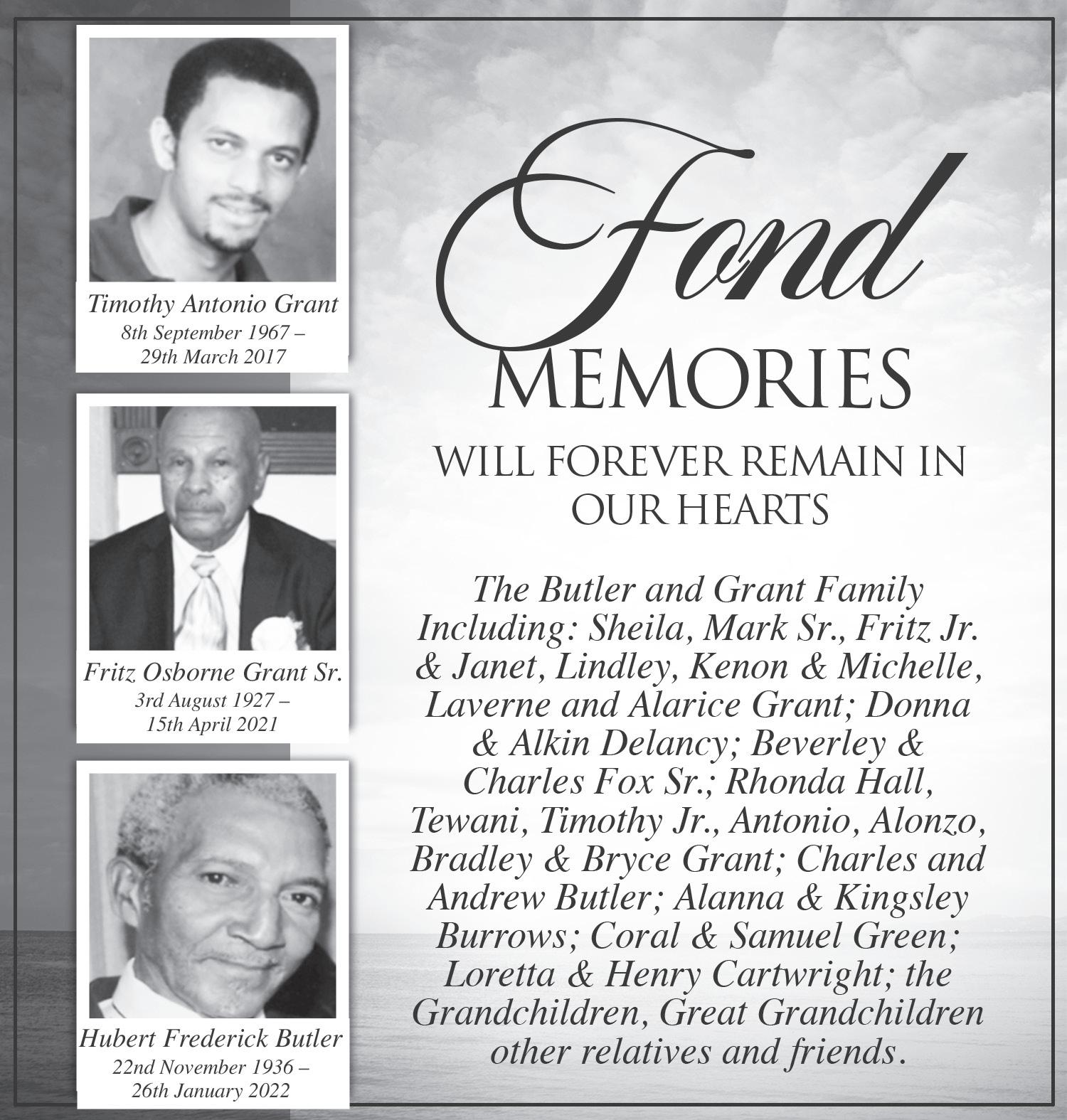 Cherish memories will forever live on in the hearts of his wife: Cassandra Butler; children: Crystal, Stacy, Shenique, Cindy, Ingrid, Anya, Mary, Sasha, Christian, Ian, Shannandoah, Anthorn, Hugo, Travis; siblings: Hansel Brown, Phillip Whylly, Errol Whylly, Lambert Whylly, Clifton Junior Morley, Iris Whylly, Shirley Whylly, Lynzell Rhaming, Alma Brice, Thelma Ferguson, Deborah Miller, Myrna Denise Sipplen, Donna R Scott, Sandy T. McClaurin; 1 aunt: Merneve; and a host of other relatives and friends.