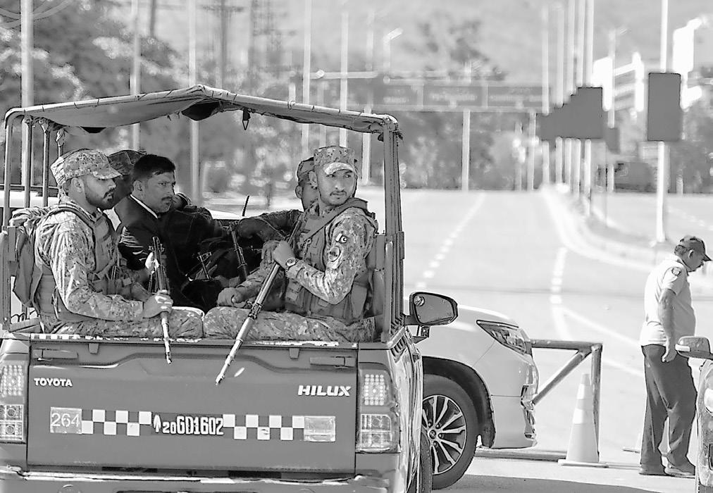 ARMY troops patrol at a road to ensure security ahead of the second round of the U.S. Iran officials talks, in Islamabad, Pakistan, Sunday, April 19, 2026. Photo:M.A. Sheikh/AP