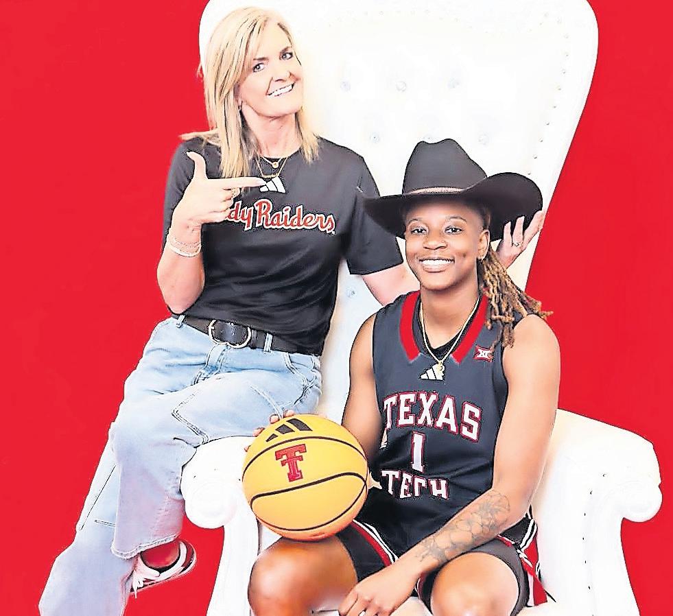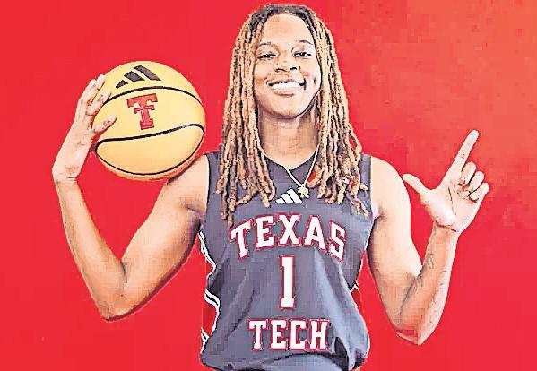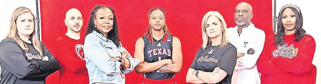 HIDDEN GEM: Rhema Collins is flanked by Texas Tech Lady Raiders women’s basketball coaching staff.
