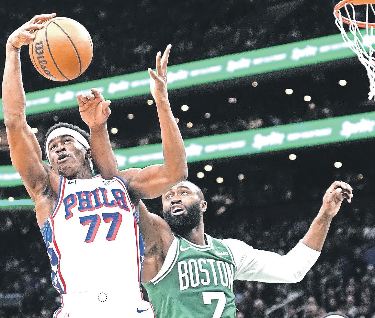 minutes when Brown was assessed a technical foul after his emphatic onehanded dunk over Adem Bona that sent the 76ers big man to the floor. Replays appeared to show that Brown’s momentum after the jam carried him into contact with