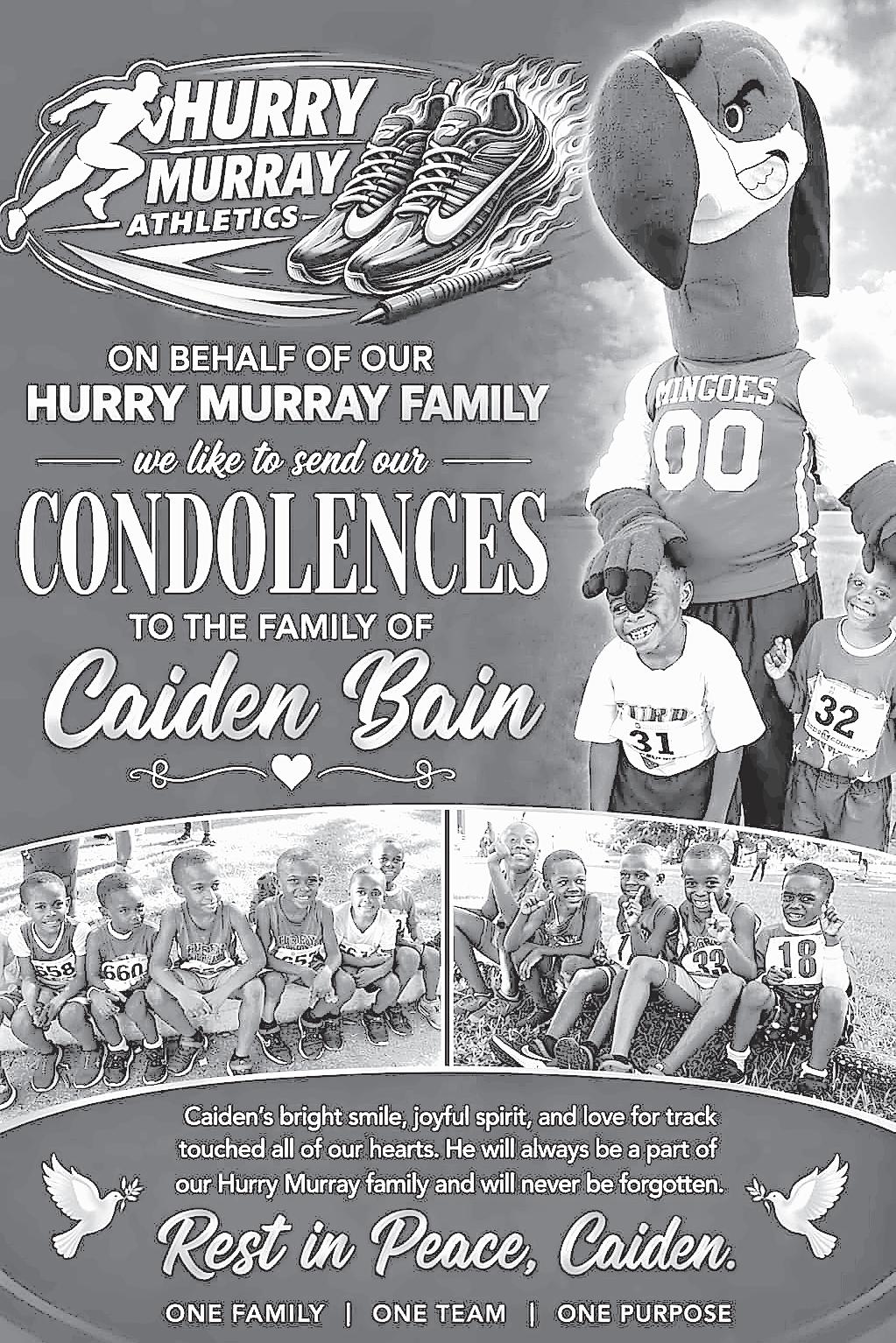 THE Bahamian track and field community is mourning the loss of eightyear-old Caiden Prince Bain, a young athlete whose personality and love for the sport left a lasting impression well beyond his years.