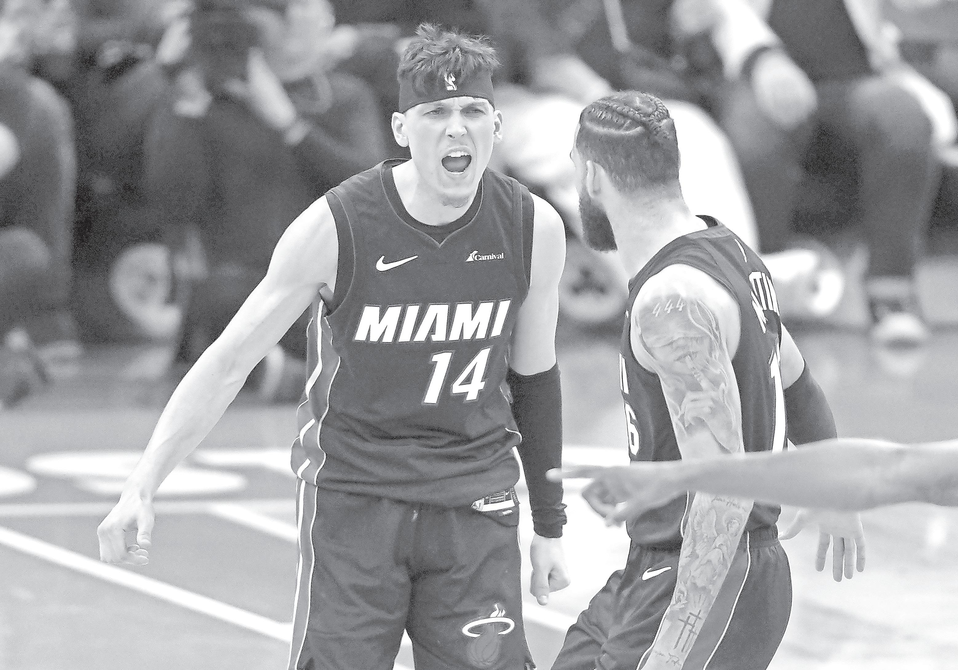 Tyler Herro had 24 points and 14 assists, hitting six of Miami’s 23 3-pointers — the most in a playoff game in franchise history — to lead the Heat to a 111-101 victory over top-seeded Boston and tie the firstround playoff series at one game apiece. “It was a very good response,” Heat coach Erik Spoelstra said. “And then we also made some shots. It always looks better when you make shots.”