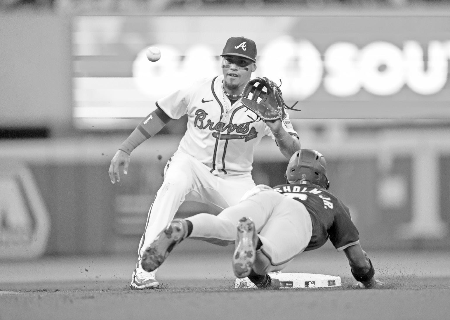 Acuña opened the game for the Braves with a walk and stolen base, the eighth straight game he has reached base to lead off a game. He reached third on a single by Harris, then scored on a balk. Ozuna then singled home Harris for a 2-0 lead. Ozuna knocked in Olson in the third with a single after Olson doubled to right. The hit snapped an 0-for-25 stretch for Olson.