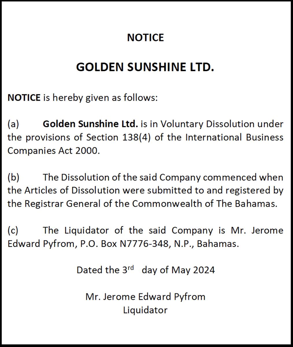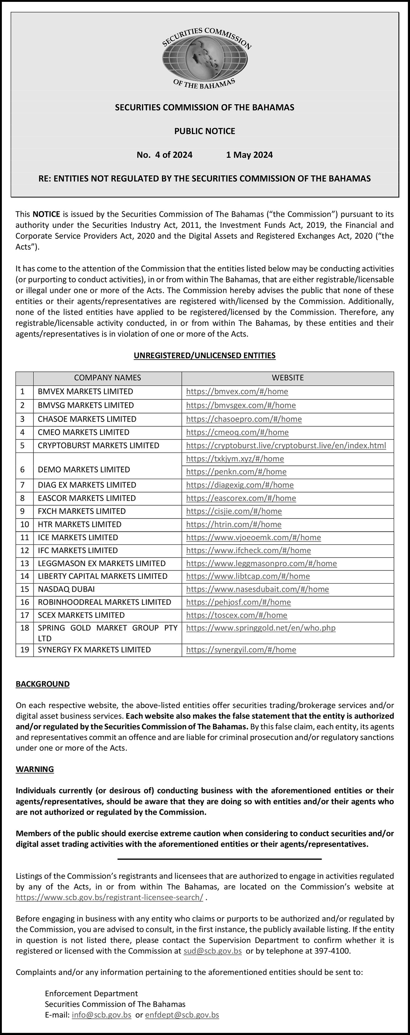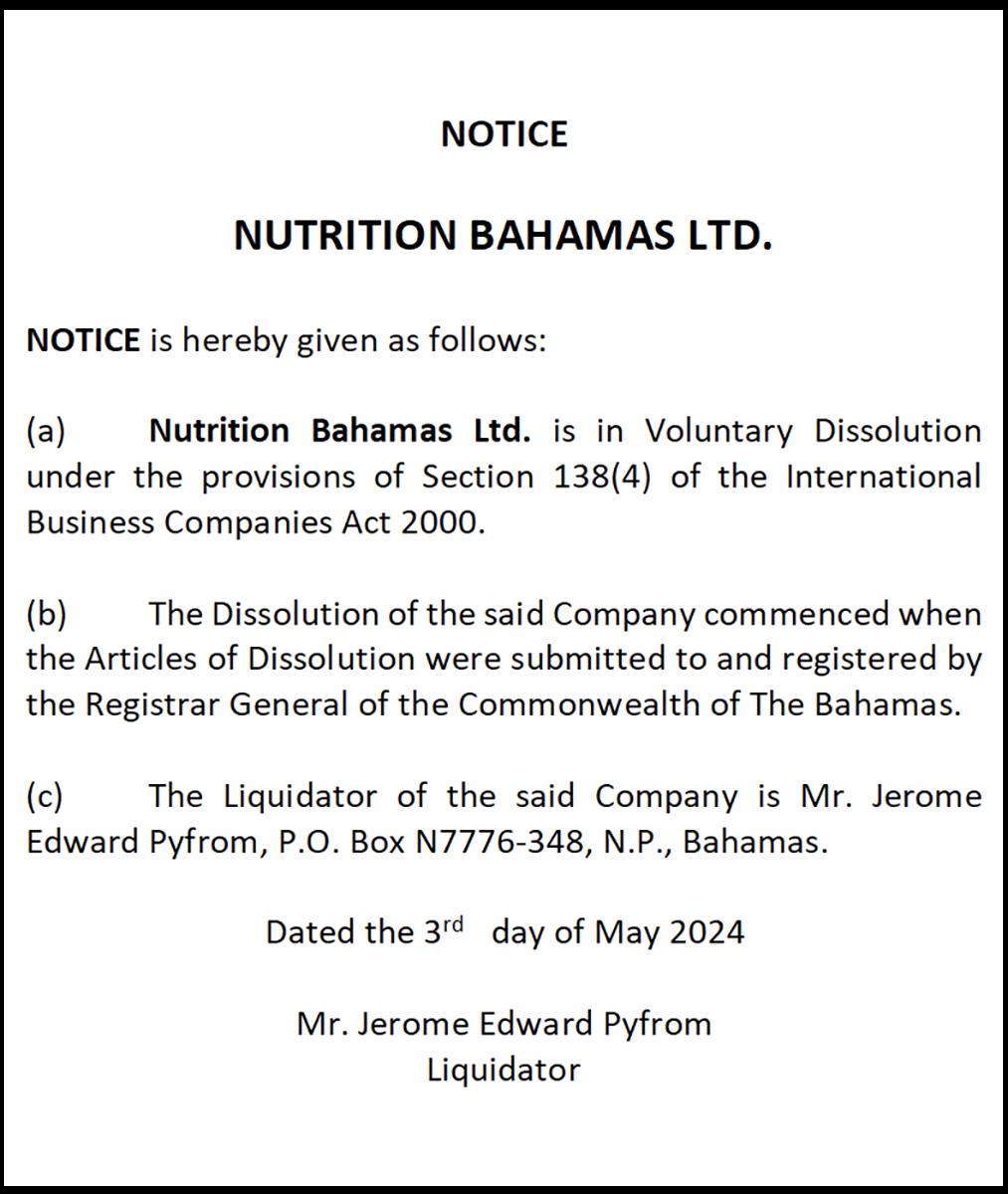 NOTICE is hereby given that MARCIA PAULINE FORBES-SMITH of Faith Avenue, New Providence, The Bahamas is applying to the Minister responsible for Nationality and Citizenship, for registration/ naturalization as a citizen of The Bahamas, and that any person who knows any reason why registration/naturalization should not be granted, should send a written and signed statement of the facts within twenty-eight days from the 29th day of April, 2024 to the Minister responsible for nationality and Citizenship, P.O. Box N-7147, Nassau, Bahamas.
