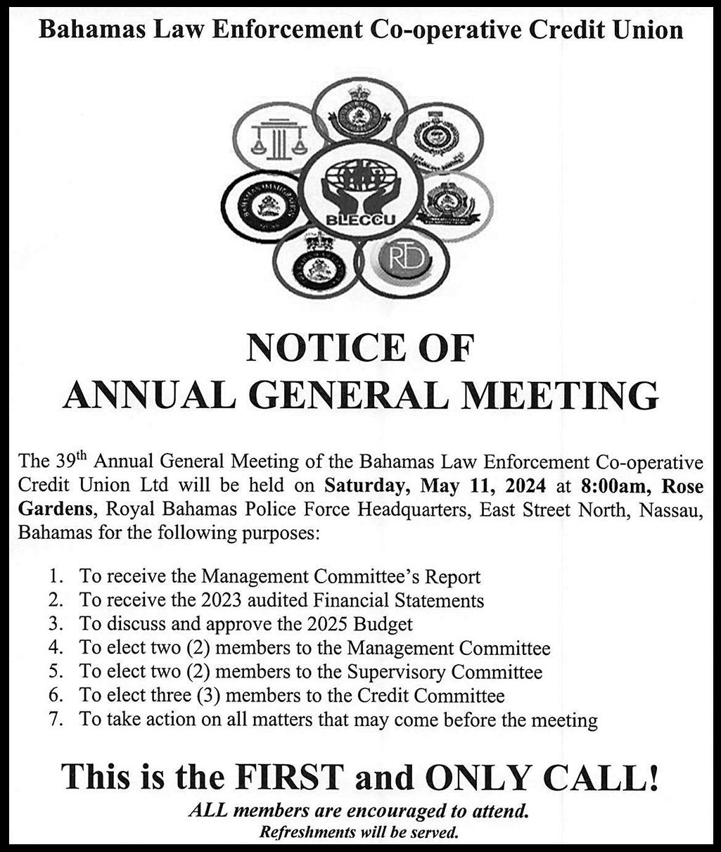 ANNETTE CLARKE JOSEPH of Allen Drive off Carmichael Road, New Providence, The Bahamas is applying to the Minister responsible for Nationality and Citizenship, for registration/ naturalization as a citizen of The Bahamas, and that any person who knows any reason why registration/naturalization should not be granted, should send a written and signed statement of the facts within twenty-eight days from the 29th day of April, 2024 to the Minister responsible for nationality and Citizenship, P.O. Box N-7147, Nassau, Bahamas.