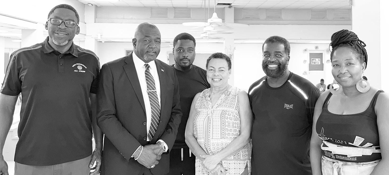 MINISTER of Youth, Sports and Culture Mario Bowleg, third from right, can be seen during his visit to Jordan Prince Williams Baptist School.