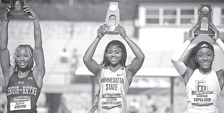 team All-America post. Alexis Brown, a sophomore at Lenoir-Rhyne, won the race in a blistering 10.96. Cartwright posted the second fastest qualifying time of 11.26, which was her previous personal best as she trailed Brown with a leading time of 11.24.
