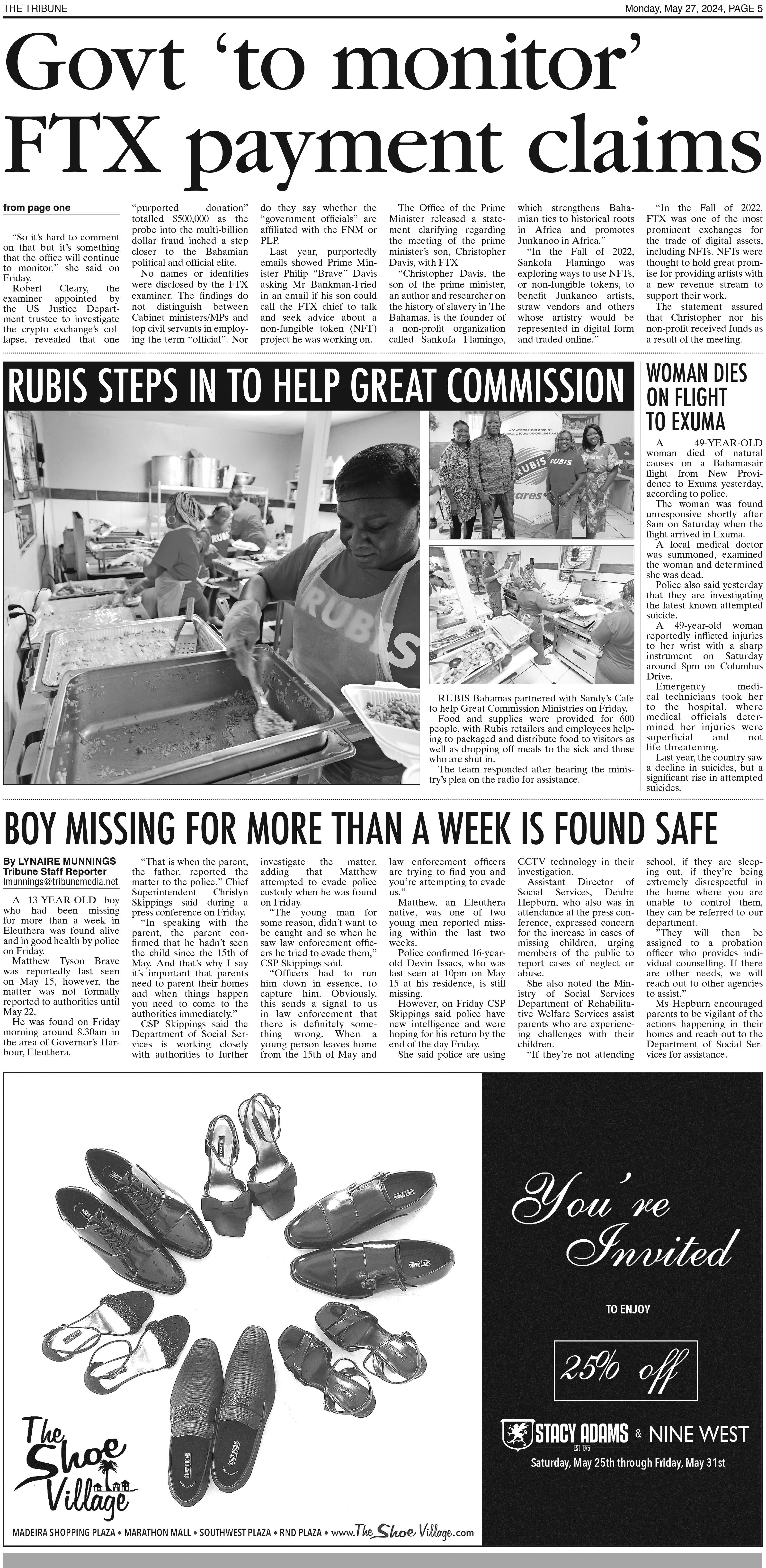 By EARYEL BOWLEG Tribune Staff Reporter ebowleg@tribunemedia.netThe Office of the Prime Minister will continue to monitor allegations that FTX and its former CEO Sam Bankman-Fried paid $675,000 to entities