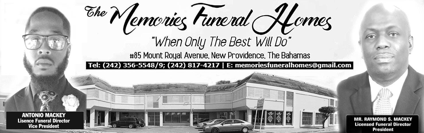A Funeral service will be held at Shirley Heights Gospel Chapel, Mount Royal Avenue, Nassau, on Saturday, 3rd June, 2023 at 5:00 p.m. Officiating will be Brother Steven Key and Brother Sam Mikhael and interment will follow in Western Cemetery, Nassau Street, Nassau.