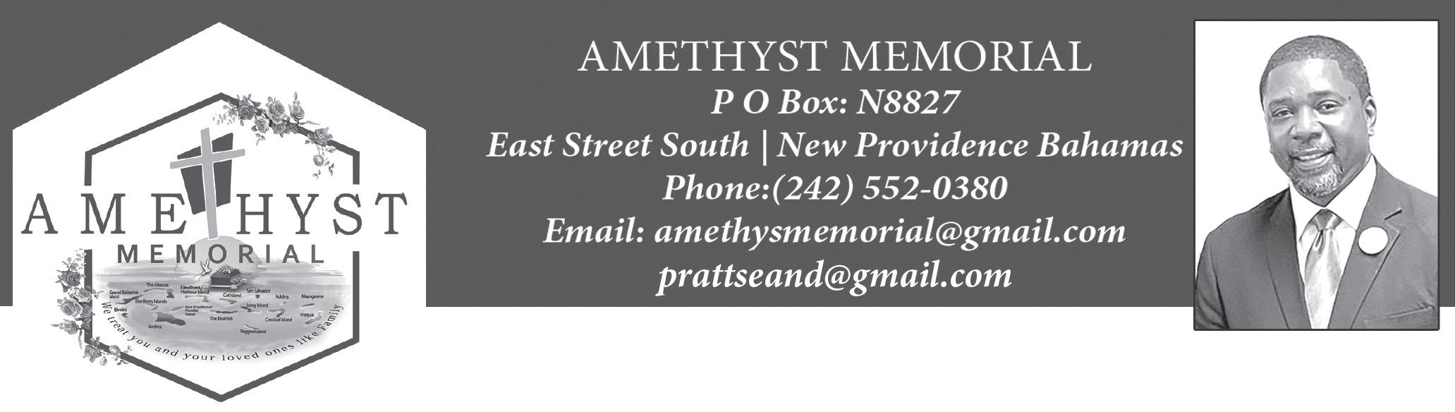 Who died at the Princess Margaret Hospital on the 11th May 2023, will be held on Saturday 3rd June 2023 at Bahamas Faith Ministries International, Carmichael Road at 11am. Officiating will be Pastor Kersch Darville and other Ministers of the Gospel. Interment Lakeview Memorial Gardens.