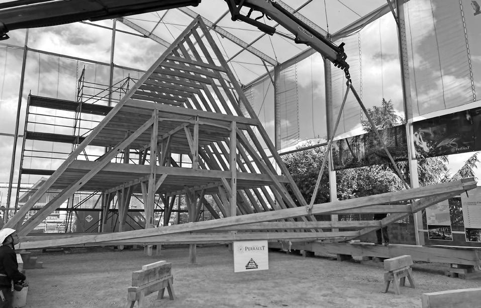The roof reconstruction hit an important milestone in May, when large parts of the new timber frame were assembled and erected at a workshop in the Loire Valley, in western France.