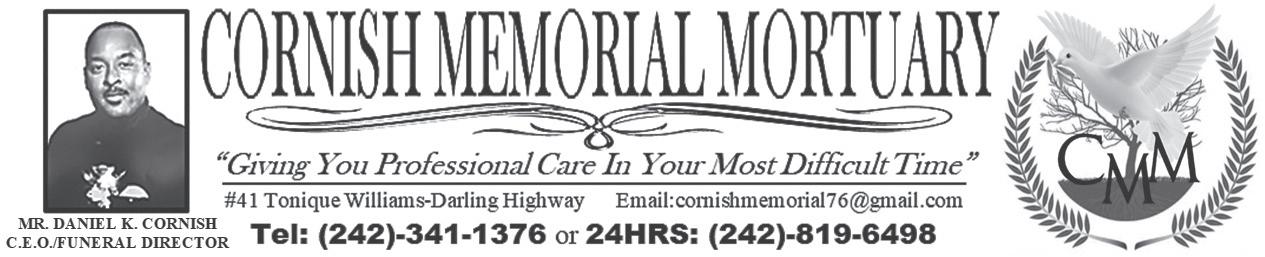 of #37 Tonique Williams-Darling Highway, will be held at Cornish Memorial Mortuary, #41 ToniqueWilliams-Darling Highway on Saturday, June 3rd, 2023, at 10:00 a.m. Officiating will be Pastor Jevon O. Neely. Cremation was held.